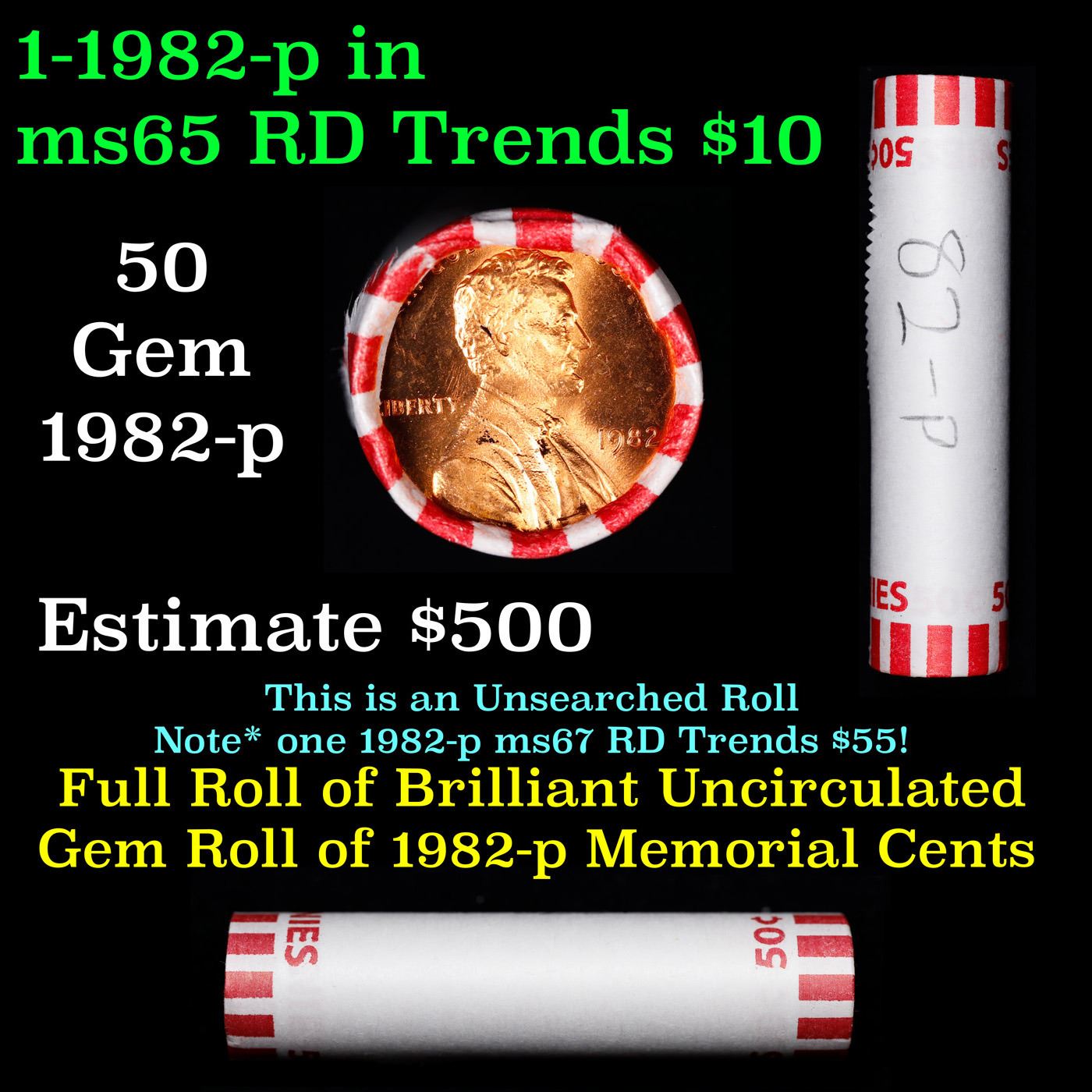 Shotgun Lincoln 1c roll, 1982-p 50 pcs Bank Wrapper.. A terrific Shotgun roll of Lincoln cents. Most if not all coin should be cherry red.