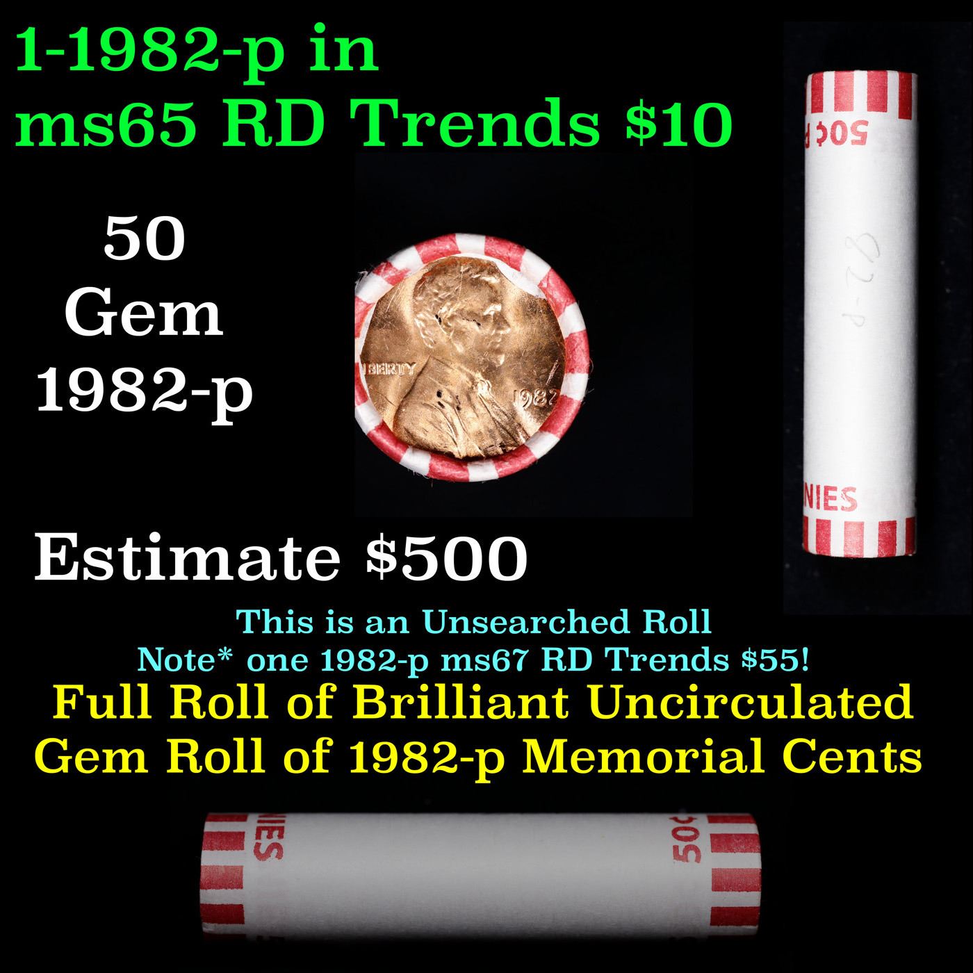 Shotgun Lincoln 1c roll, 1982-p 50 pcs Bank Wrapper.. A terrific Shotgun roll of Lincoln cents. Most if not all coin should be cherry red.