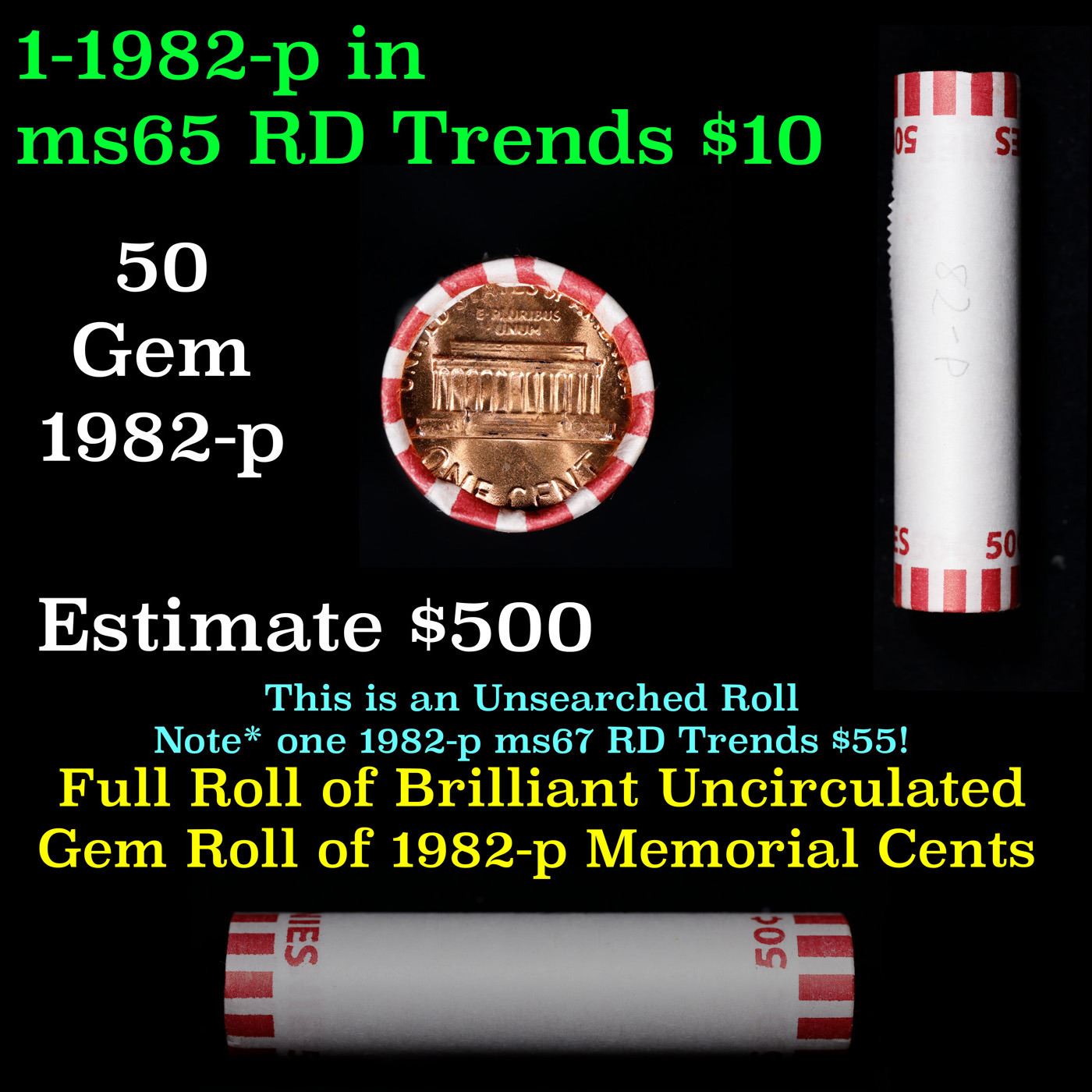 Shotgun Lincoln 1c roll, 1982-p 50 pcs Bank Wrapper.. A terrific Shotgun roll of Lincoln cents. Most if not all coin should be cherry red.