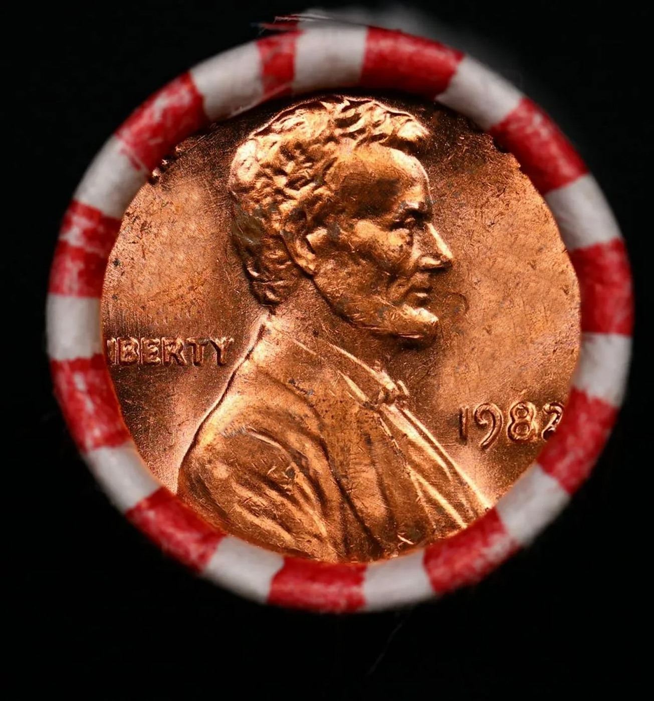 Shotgun Lincoln 1c roll, 1982-p 50 pcs Bank Wrapper.. A terrific Shotgun roll of Lincoln cents. Most if not all coin should be cherry red.