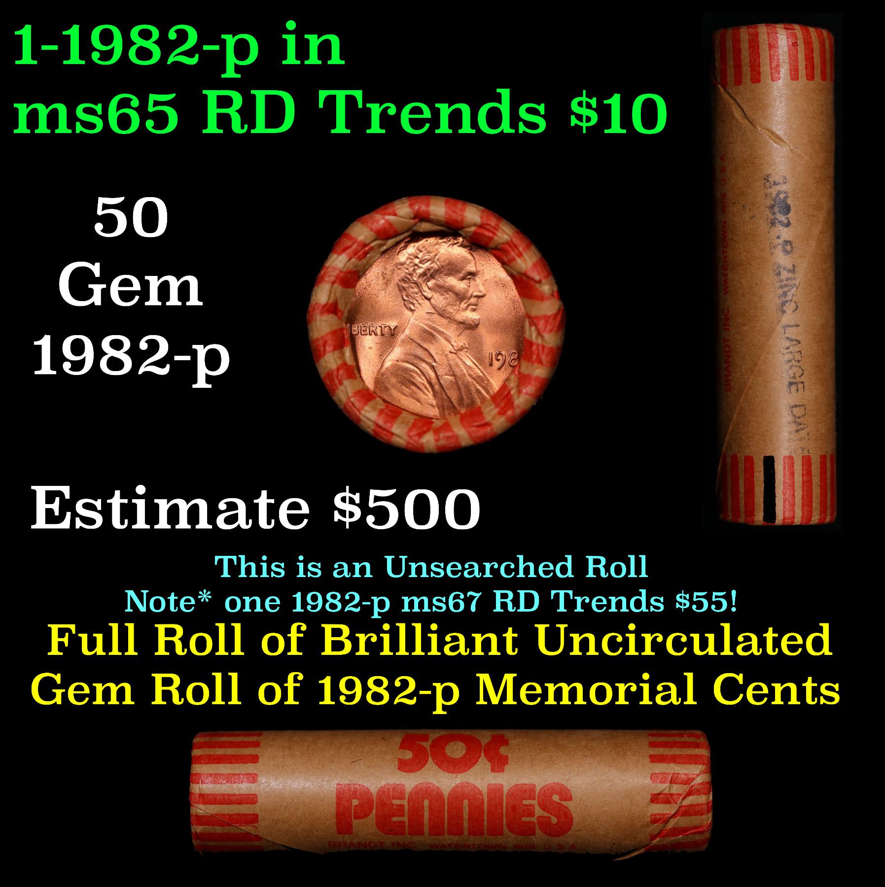 Shotgun Lincoln 1c roll, 1982-p 50 pcs Brandt 50c Wrapper.. A terrific Shotgun roll of Lincoln cents. Most if not all coin should be cherry red.