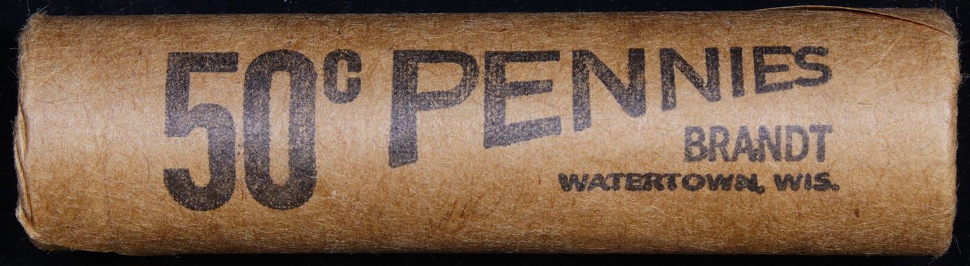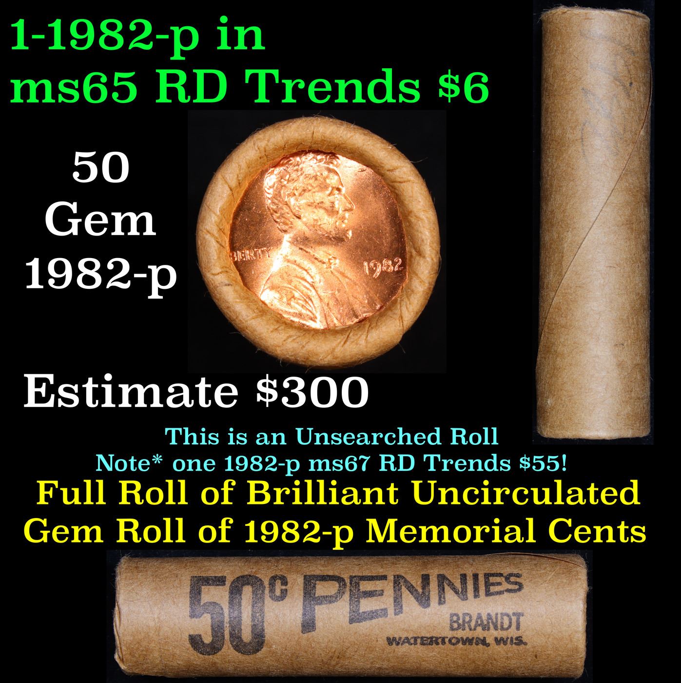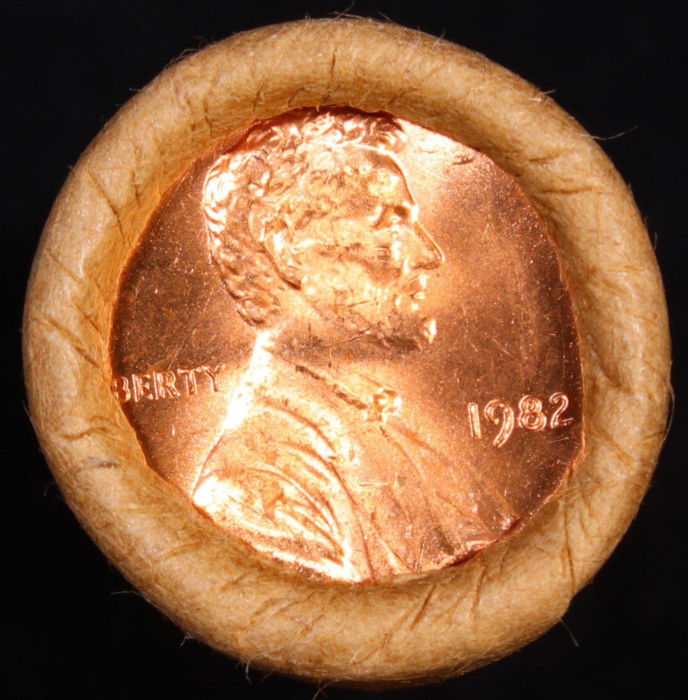 Shotgun Lincoln 1c roll, 1982-p 50 pcs Brandt Wrapper . A terrific Shotgun roll of Lincoln cents. All coins cherry red. Trends ms65 rd $7.50
