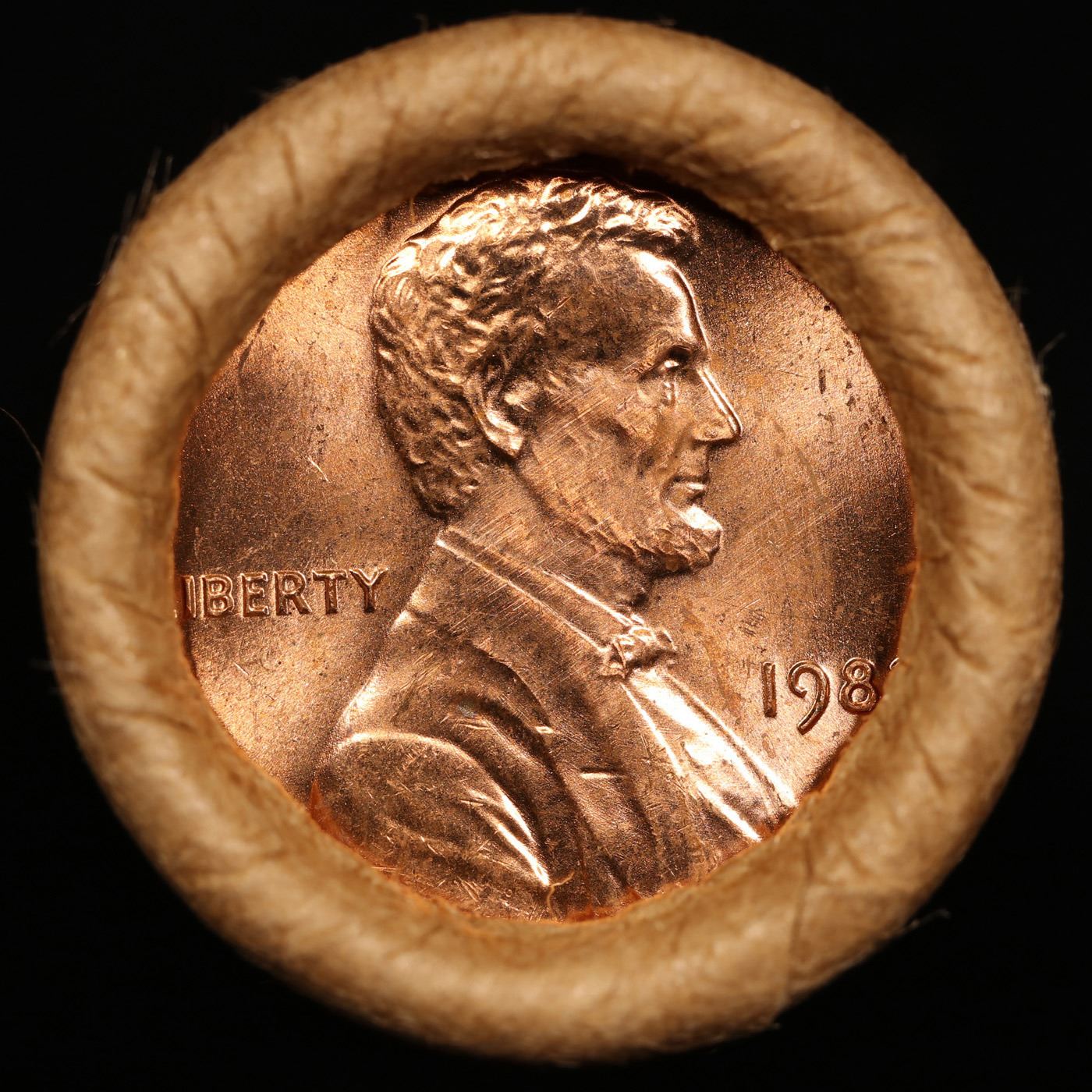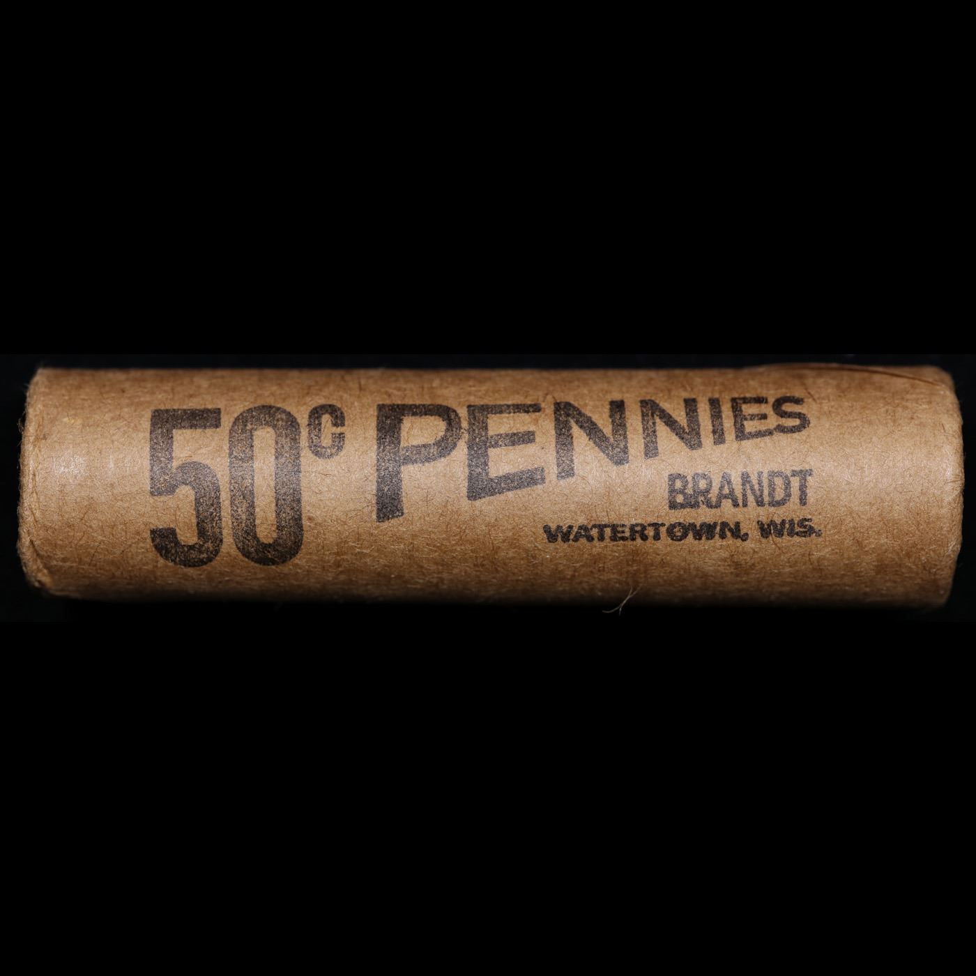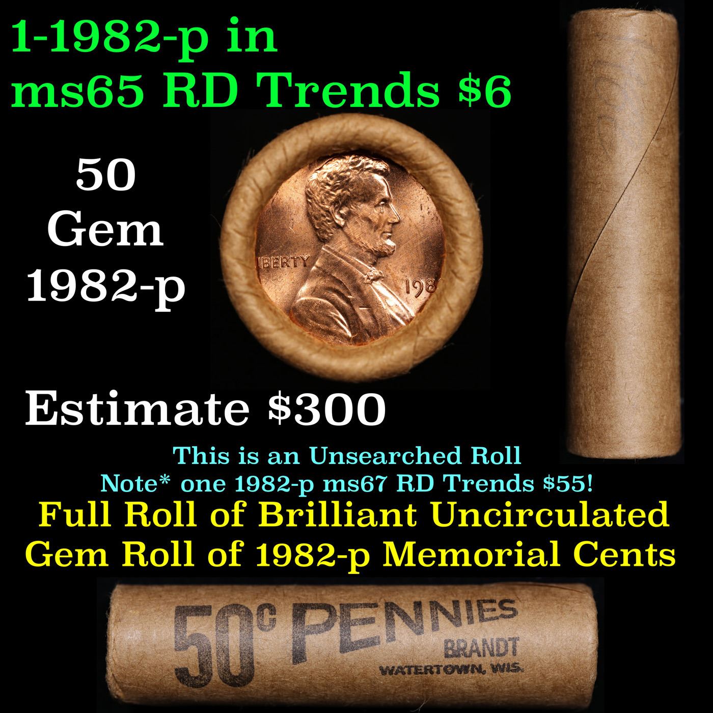 Shotgun Lincoln 1c roll, 1982-p 50 pcs Brandt Wrapper . A terrific Shotgun roll of Lincoln cents. All coins cherry red.