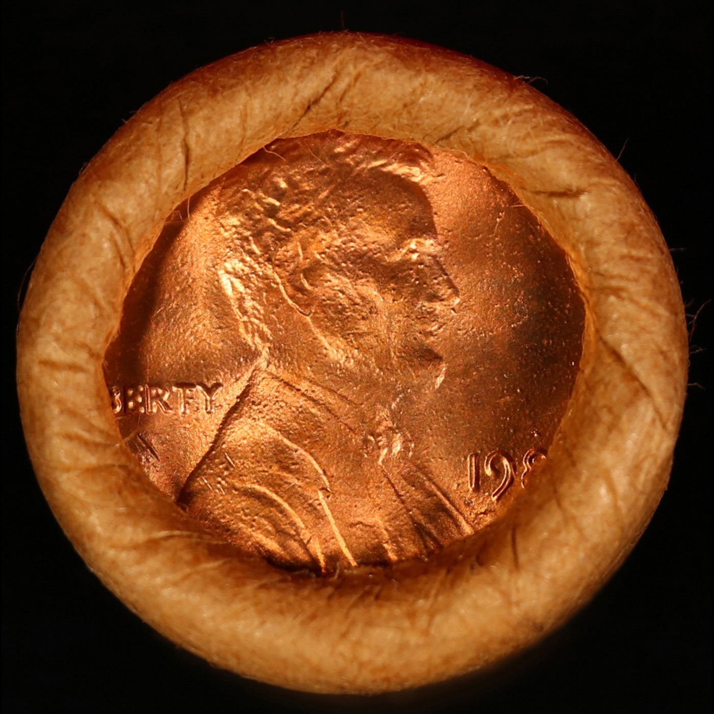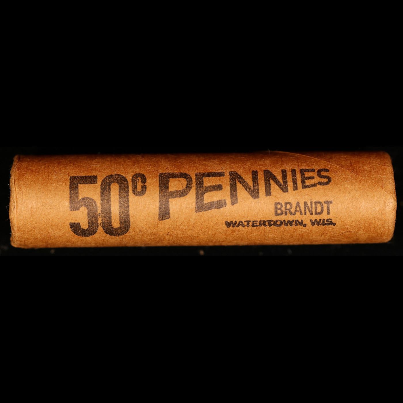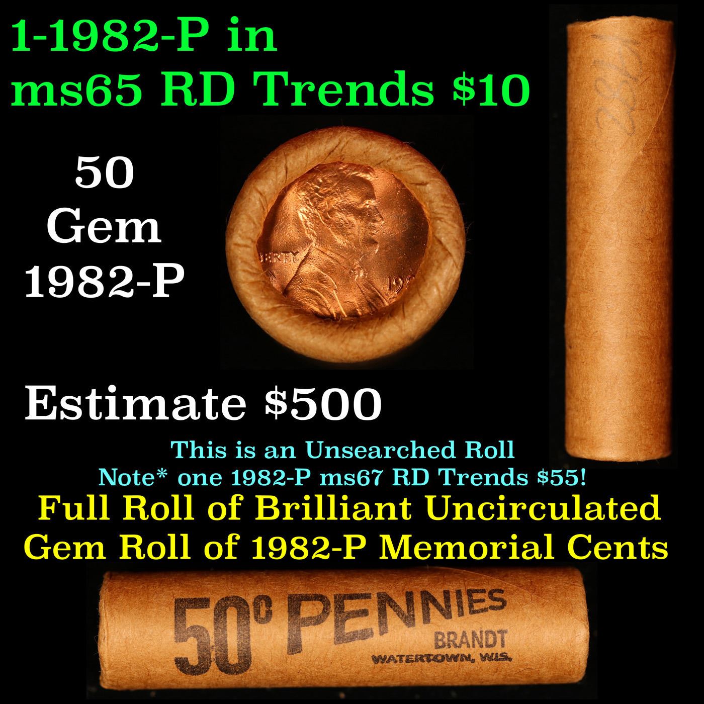 Shotgun Lincoln 1c roll, 1982-p 50 pcs Brandt Wrapper . A terrific Shotgun roll of Lincoln cents. All coins cherry red. Trends ms65 rd $6