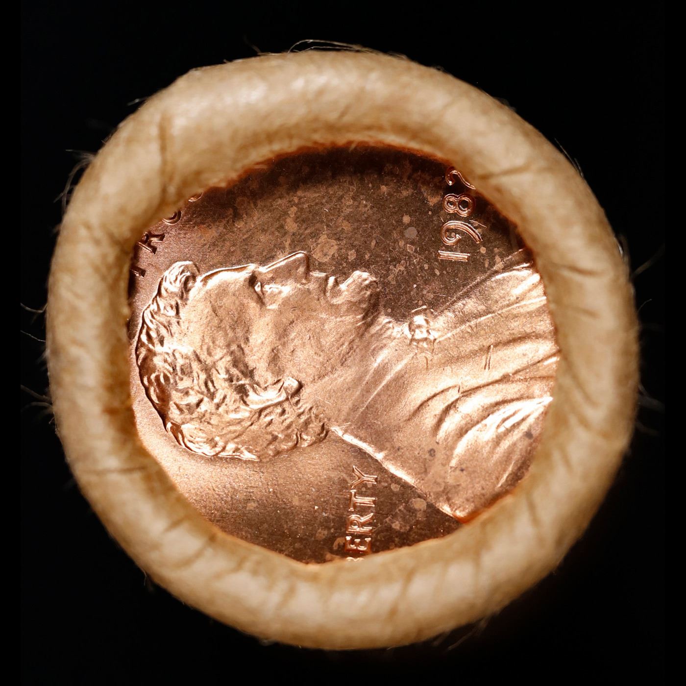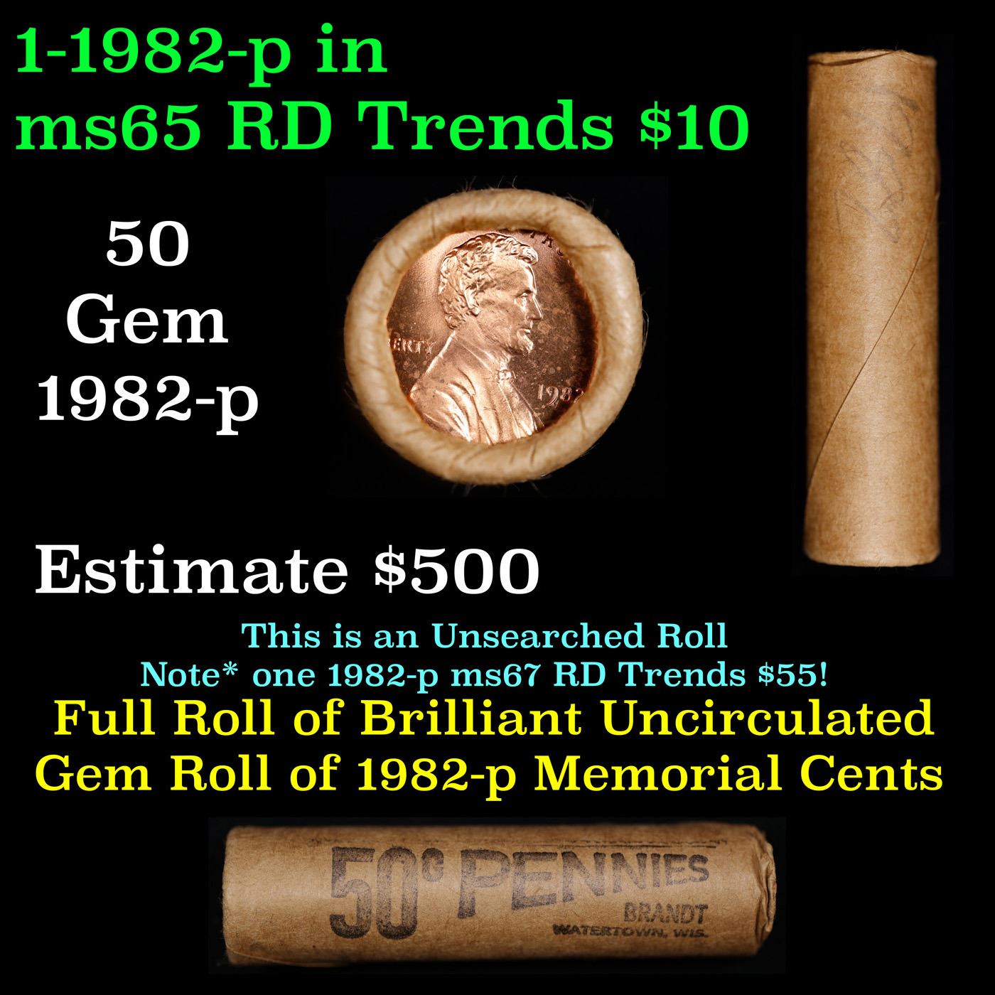 Shotgun Lincoln 1c roll, 1982-p 50 pcs Brandt Wrapper.. A terrific Shotgun roll of Lincoln cents. Most if not all coin should be cherry red. Trends ms65 rd $16