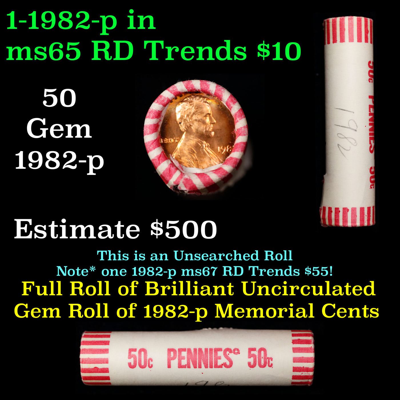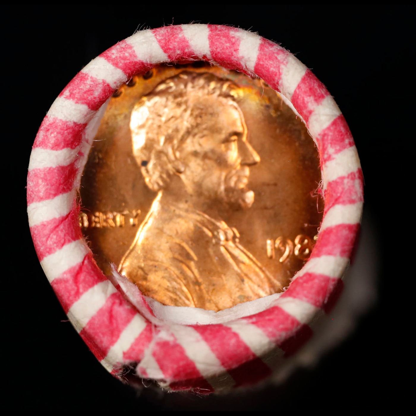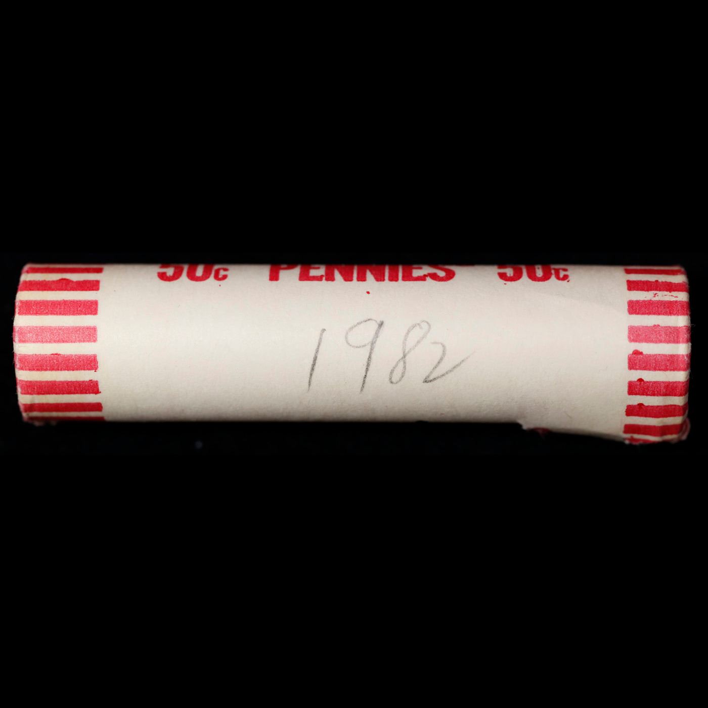 Shotgun Lincoln 1c roll, 1982-p 50 pcs Brandt Wrapper.. A terrific Shotgun roll of Lincoln cents. Most if not all coin should be cherry red.