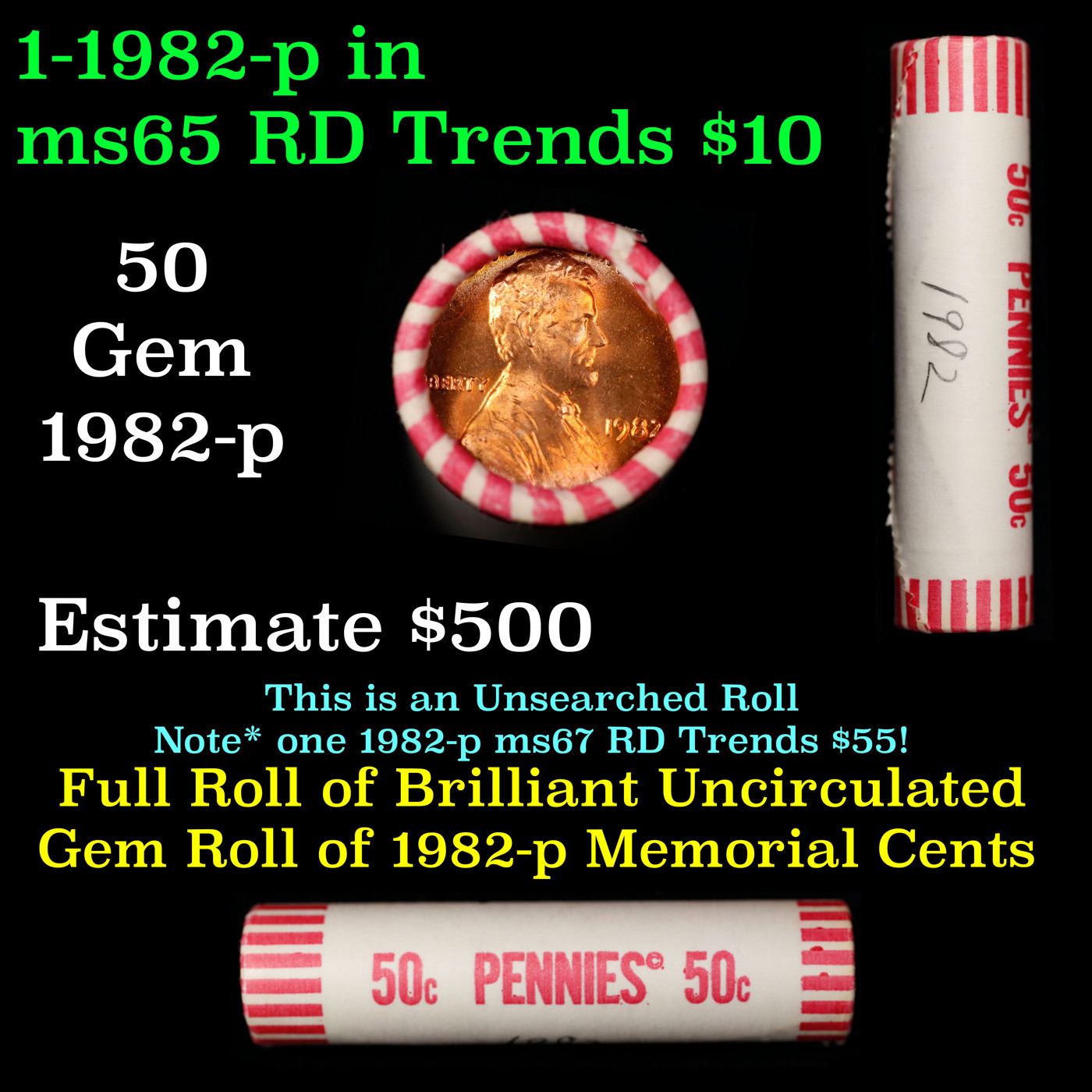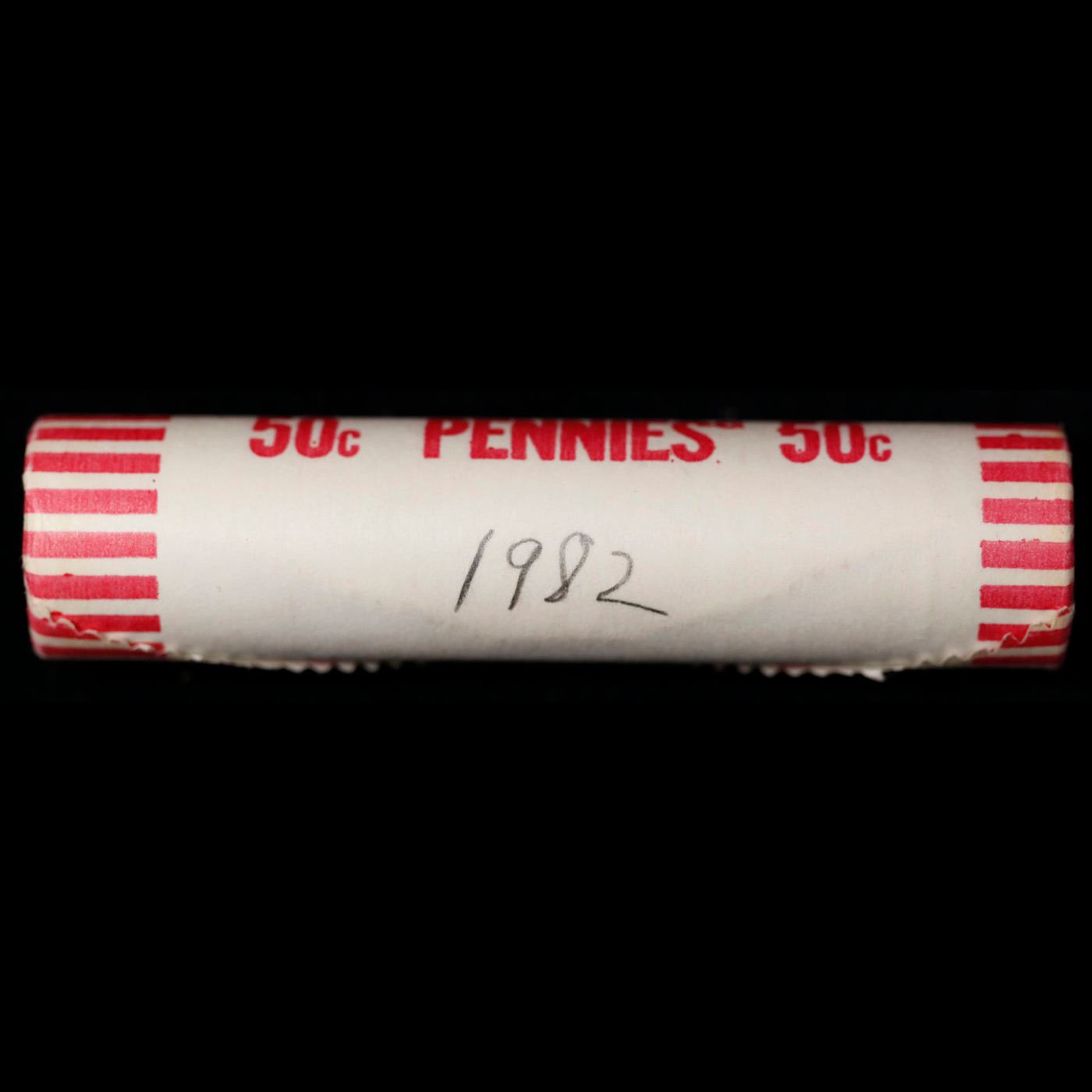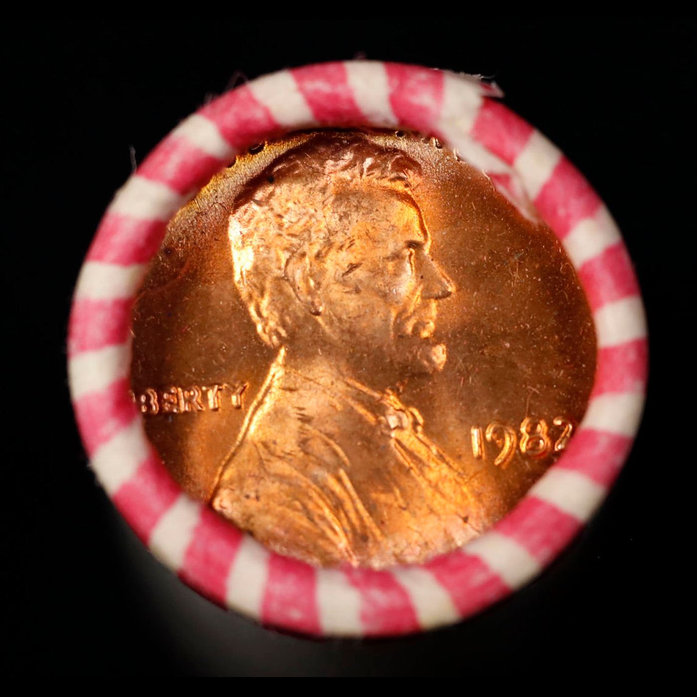 Shotgun Lincoln 1c roll, 1982-p 50 pcs Brandt Wrapper.. A terrific Shotgun roll of Lincoln cents. Most if not all coin should be cherry red.