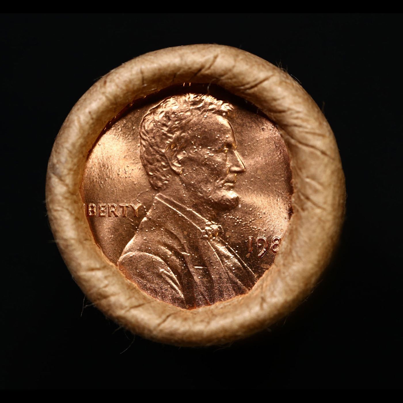 Shotgun Lincoln 1c roll, 1982-p 50 pcs Brandt Wrapper . A terrific Shotgun roll of Lincoln cents. All coins appear to be cherry red. Trends ms65 rd $6