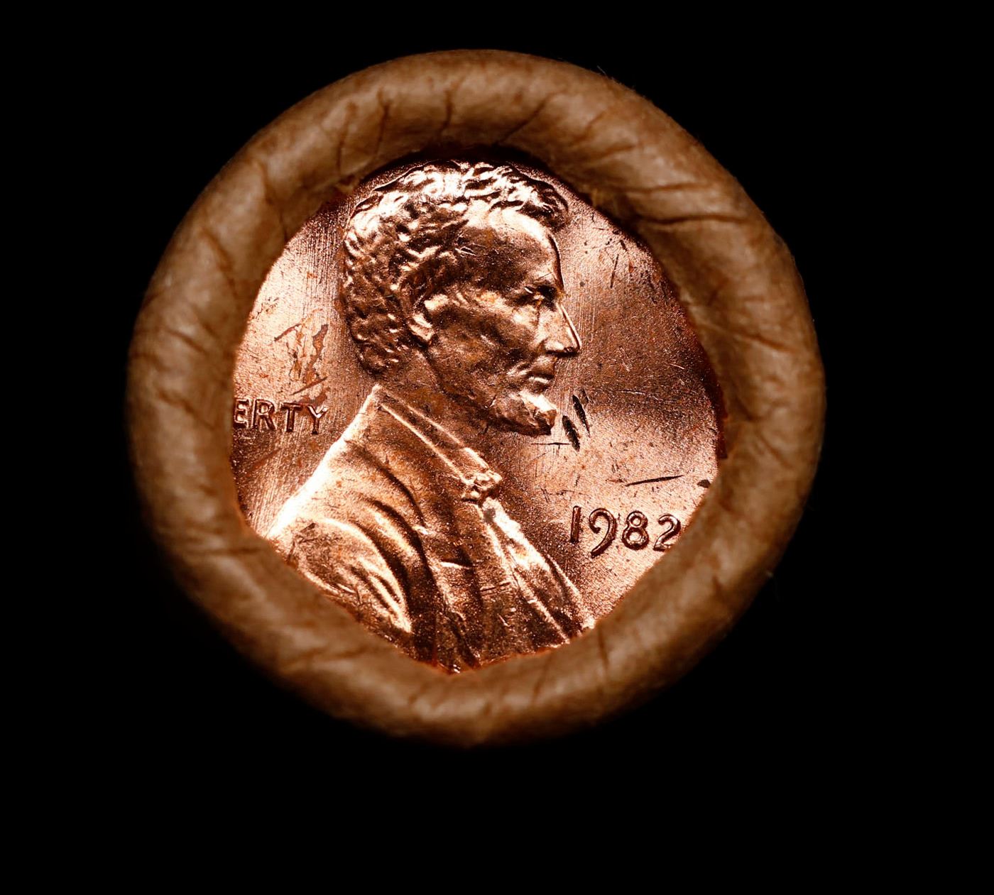 Shotgun Lincoln 1c roll, 1982-p 50 pcs Brandt Wrapper.. A terrific Shotgun roll of Lincoln cents. Most if not all coin should be cherry red.