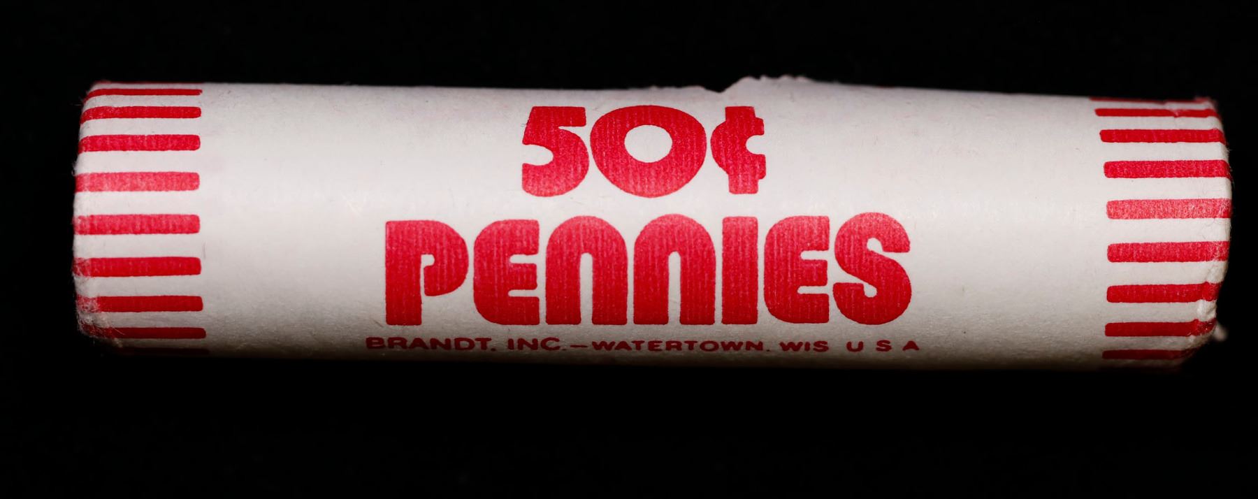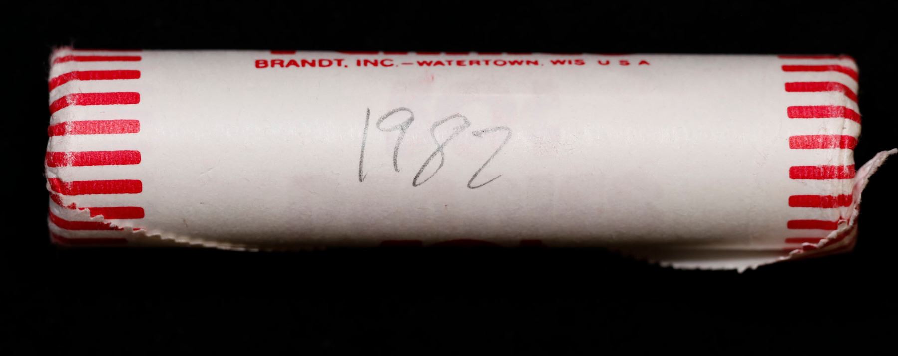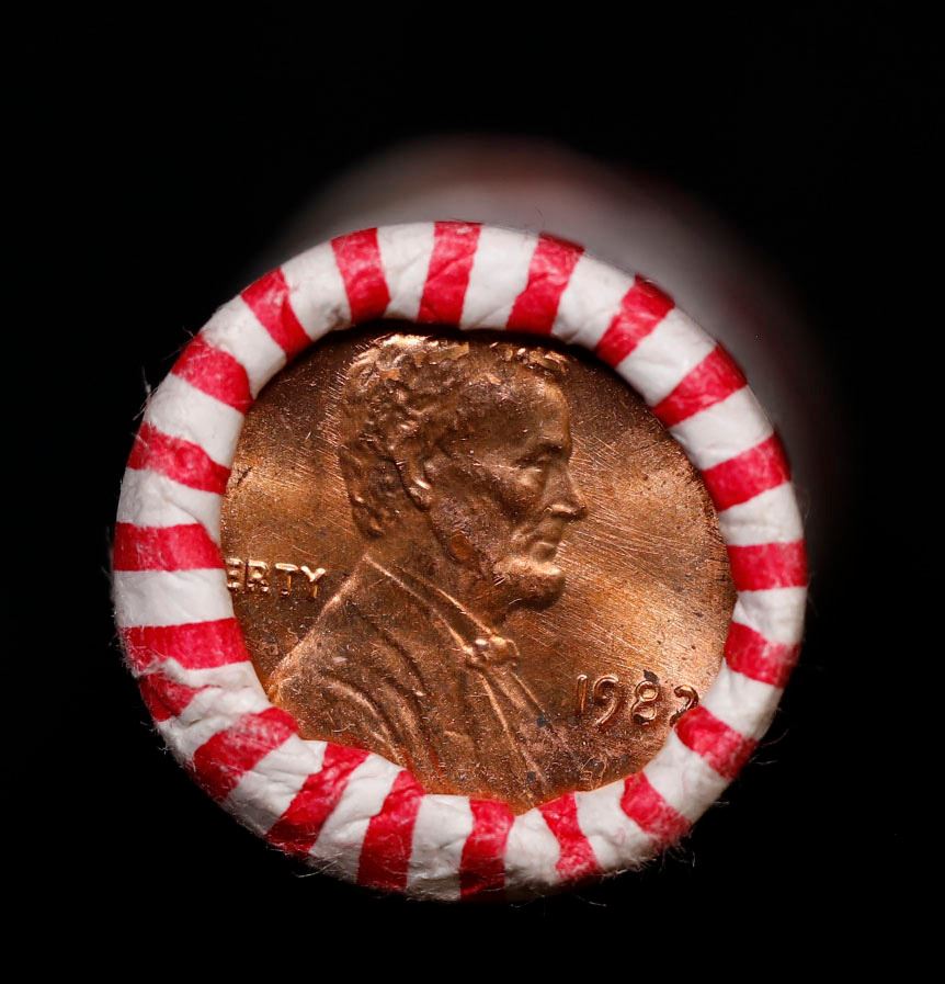 Shotgun Lincoln 1c roll, 1982-p 50 pcs Brandt Wrapper.. A terrific Shotgun roll of Lincoln cents. Most if not all coin should be cherry red.