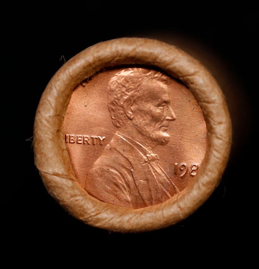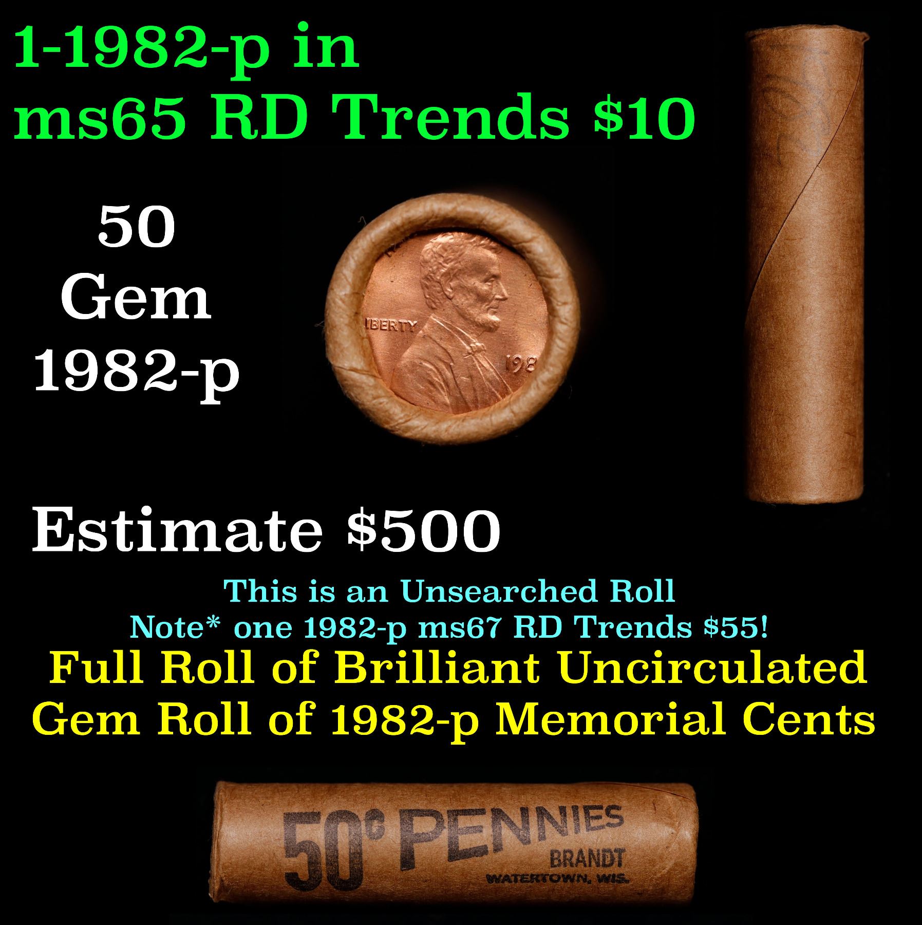 Shotgun Lincoln 1c roll, 1982-p 50 pcs Brandt Wrapper.. A terrific Shotgun roll of Lincoln cents. Most if not all coin should be cherry red.