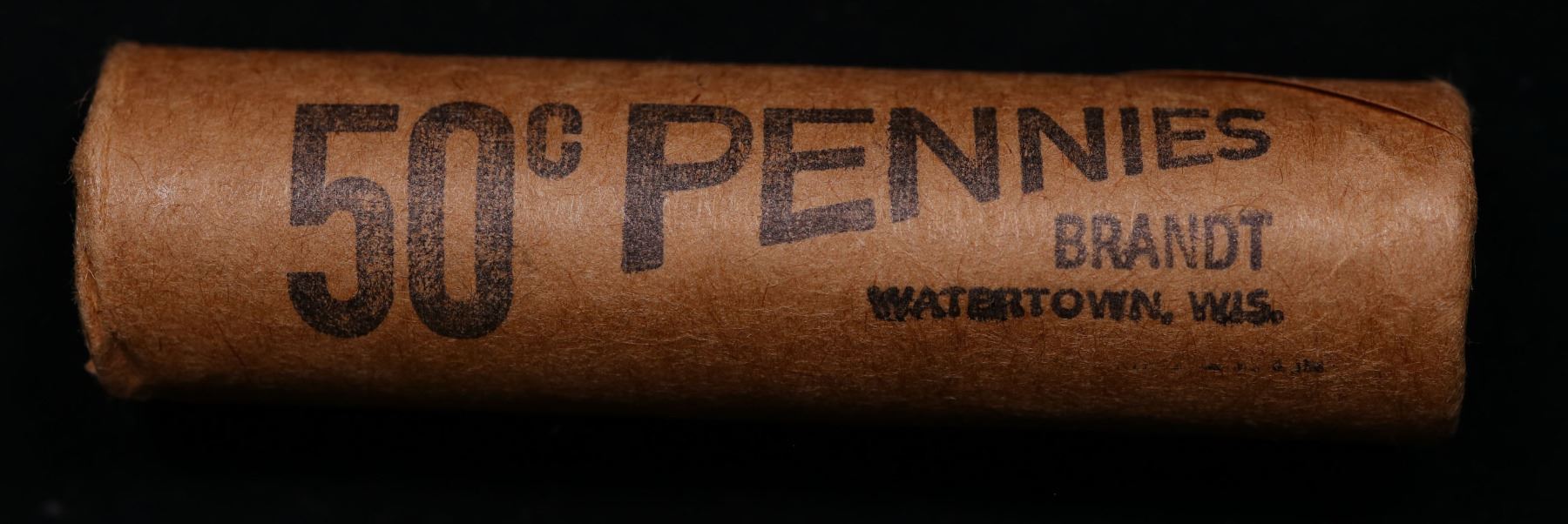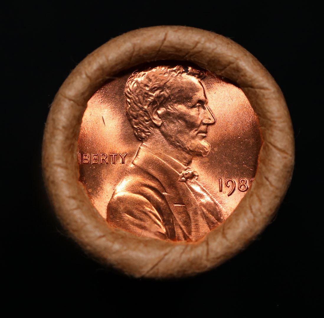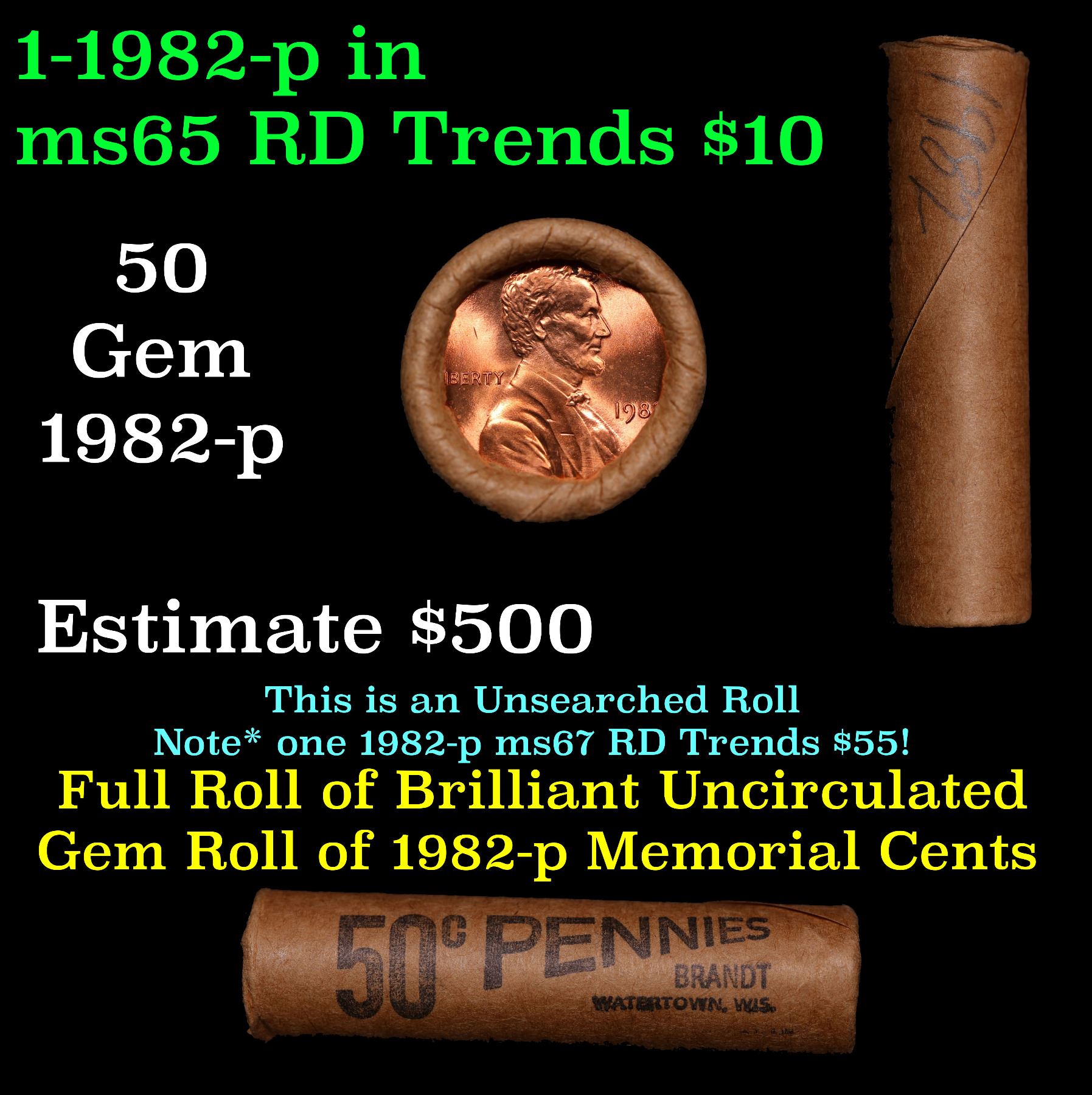 Shotgun Lincoln 1c roll, 1982-p 50 pcs Brandt Wrapper.. A terrific Shotgun roll of Lincoln cents. Most if not all coin should be cherry red.