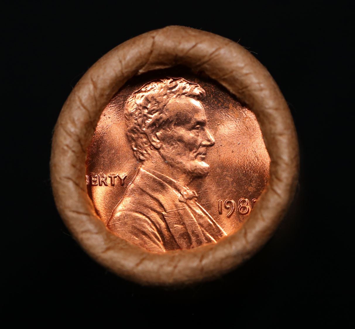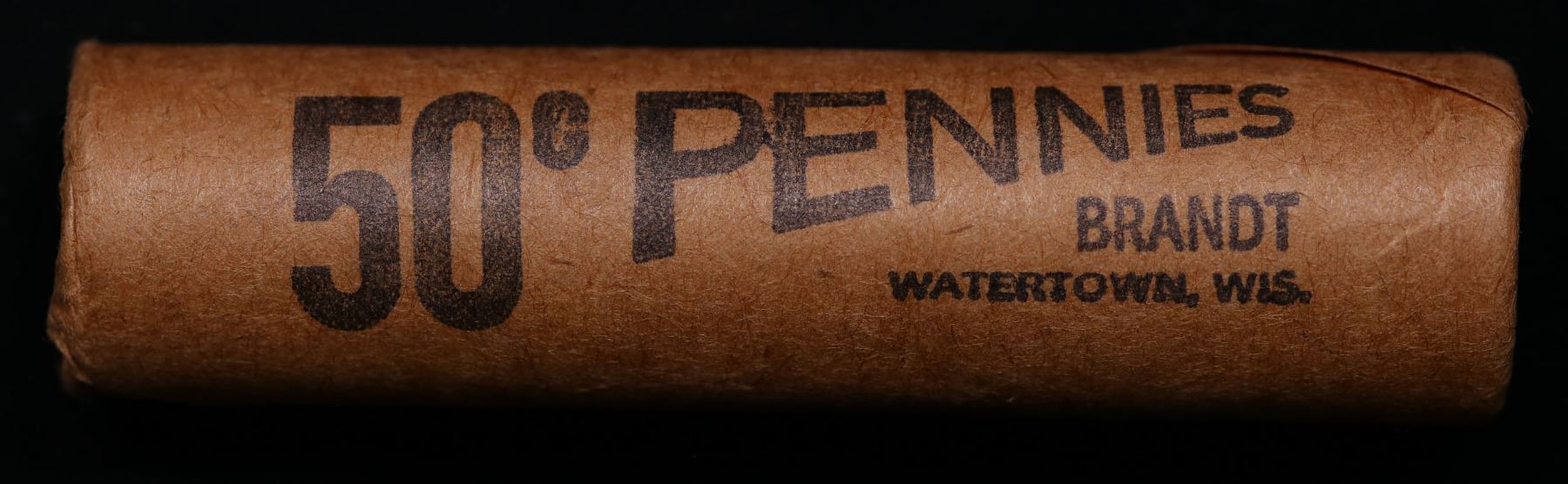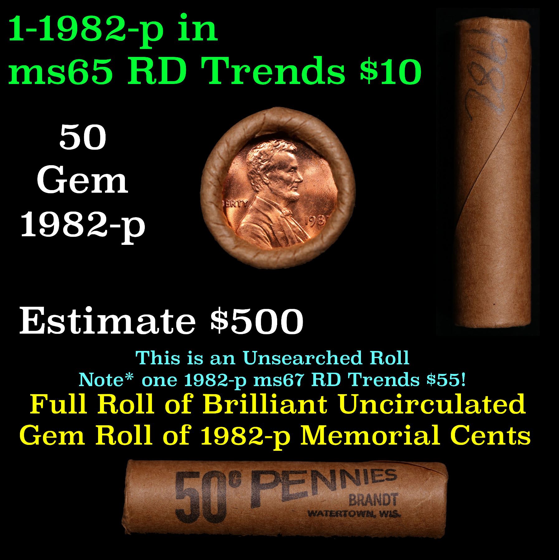 Shotgun Lincoln 1c roll, 1982-p 50 pcs Brandt Wrapper.. A terrific Shotgun roll of Lincoln cents. Most if not all coin should be cherry red.