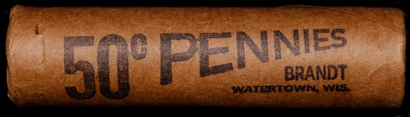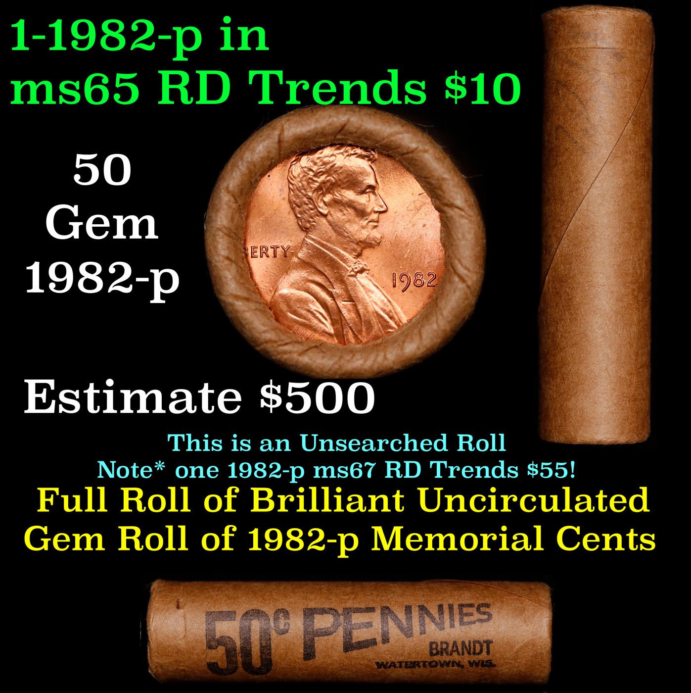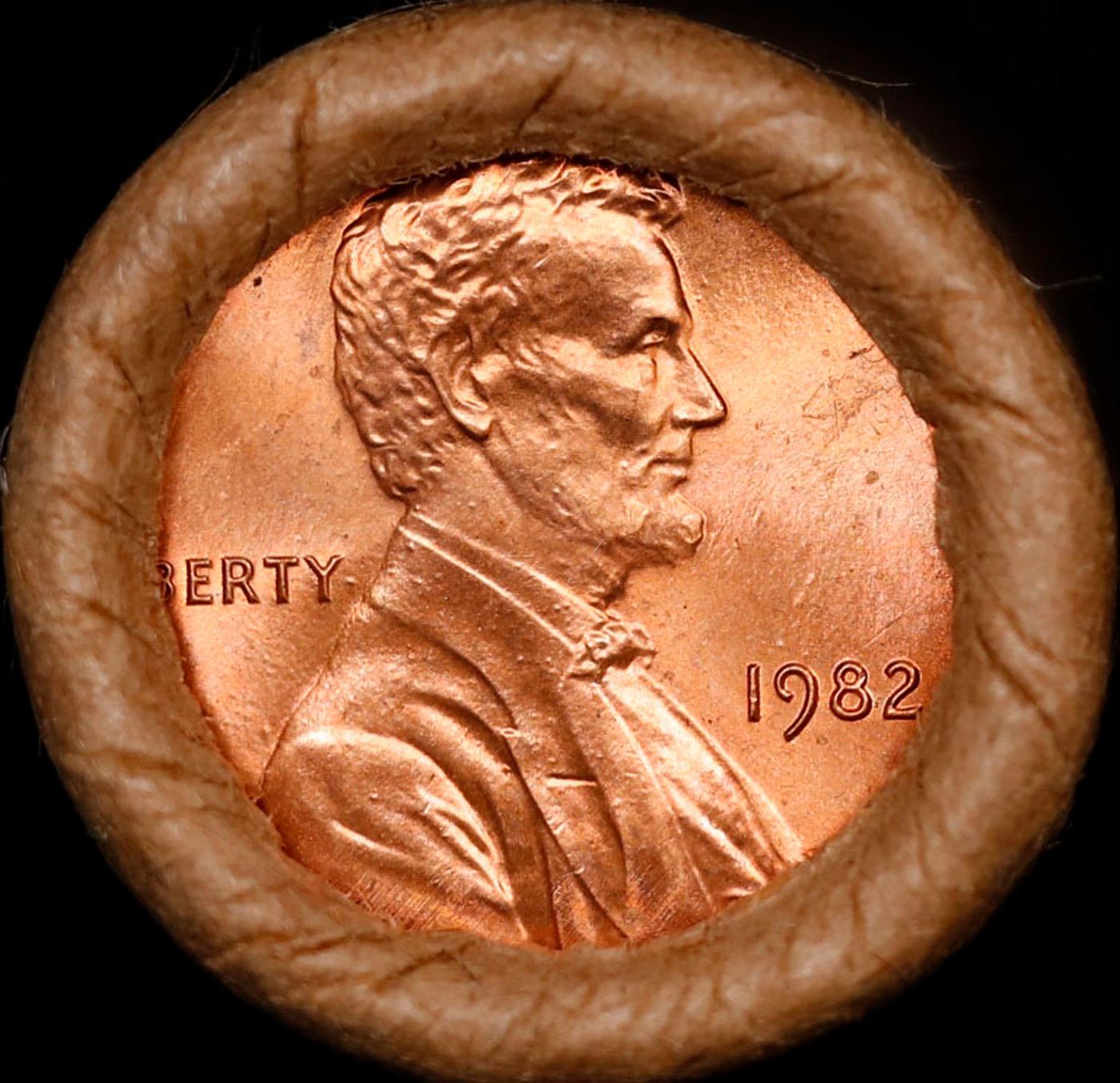 Shotgun Lincoln 1c roll, 1982-p 50 pcs Brandt Wrapper.. A terrific Shotgun roll of Lincoln cents. Most if not all coin should be cherry red.