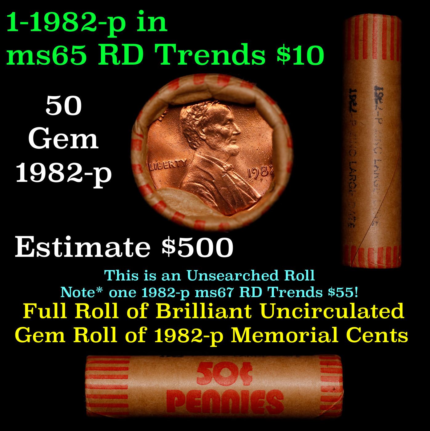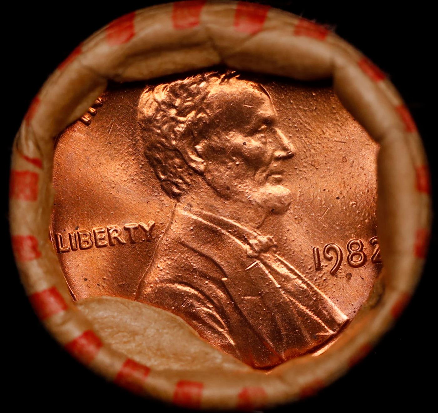 Shotgun Lincoln 1c roll, 1982-p 50 pcs Brandt Wrapper.. A terrific Shotgun roll of Lincoln cents. Most if not all coin should be cherry red.