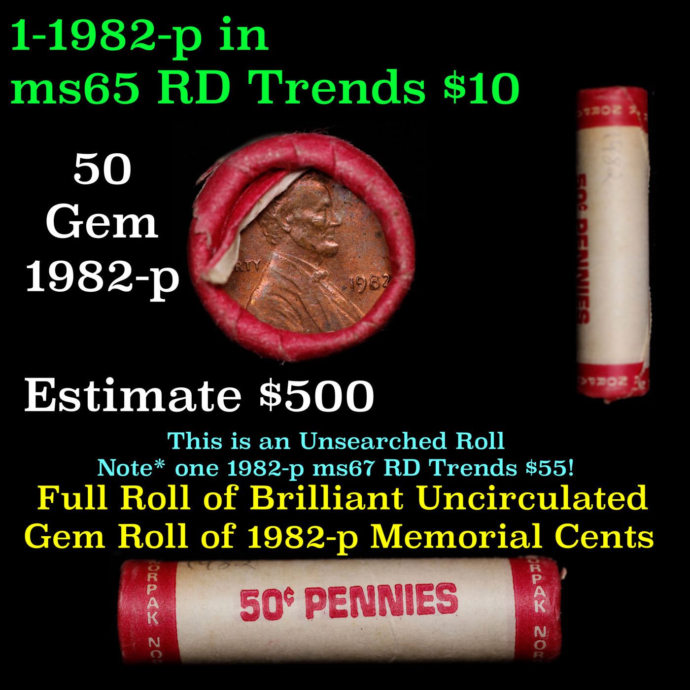 Shotgun Lincoln 1c roll, 1982-p 50 pcs Penny Bank Wrapper.. A terrific Shotgun roll of Lincoln cents. Most if not all coin should be cherry red.