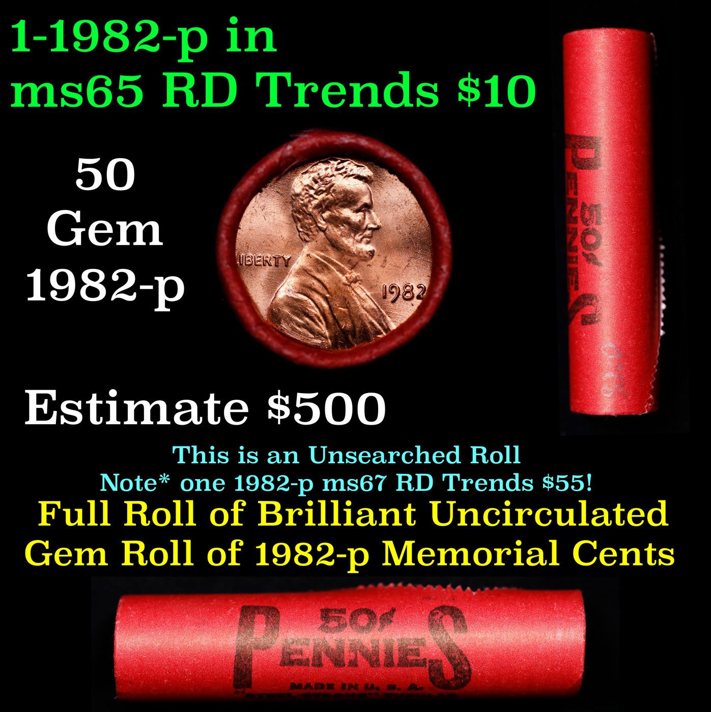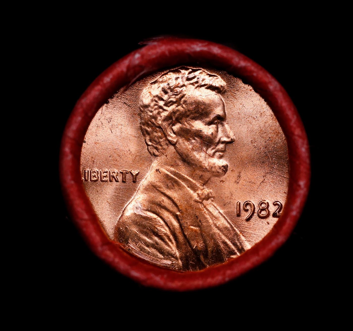 Shotgun Lincoln 1c roll, 1982-p 50 pcs Steel-Strong Wrapper.. A terrific Shotgun roll of Lincoln cents. Most if not all coin should be cherry red.