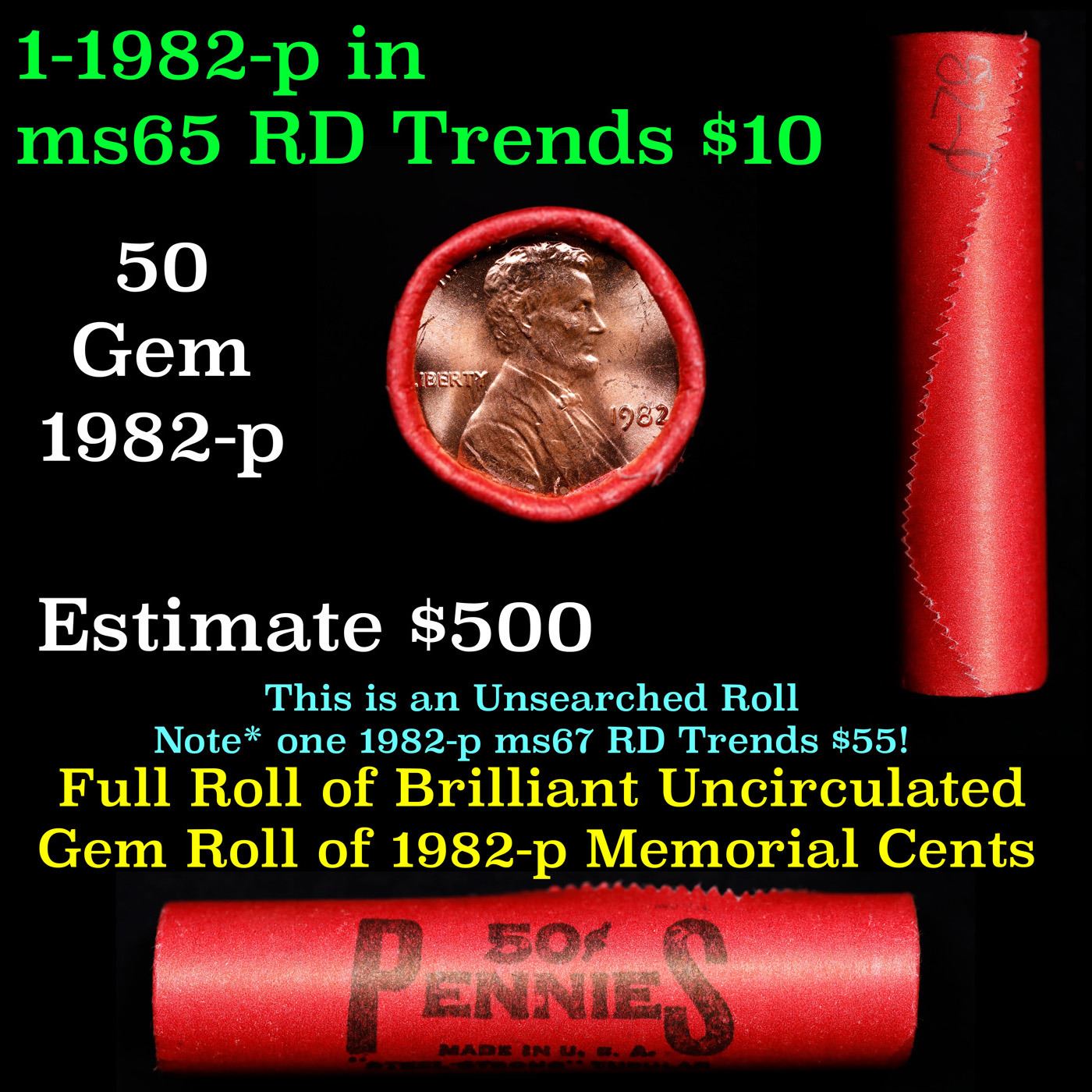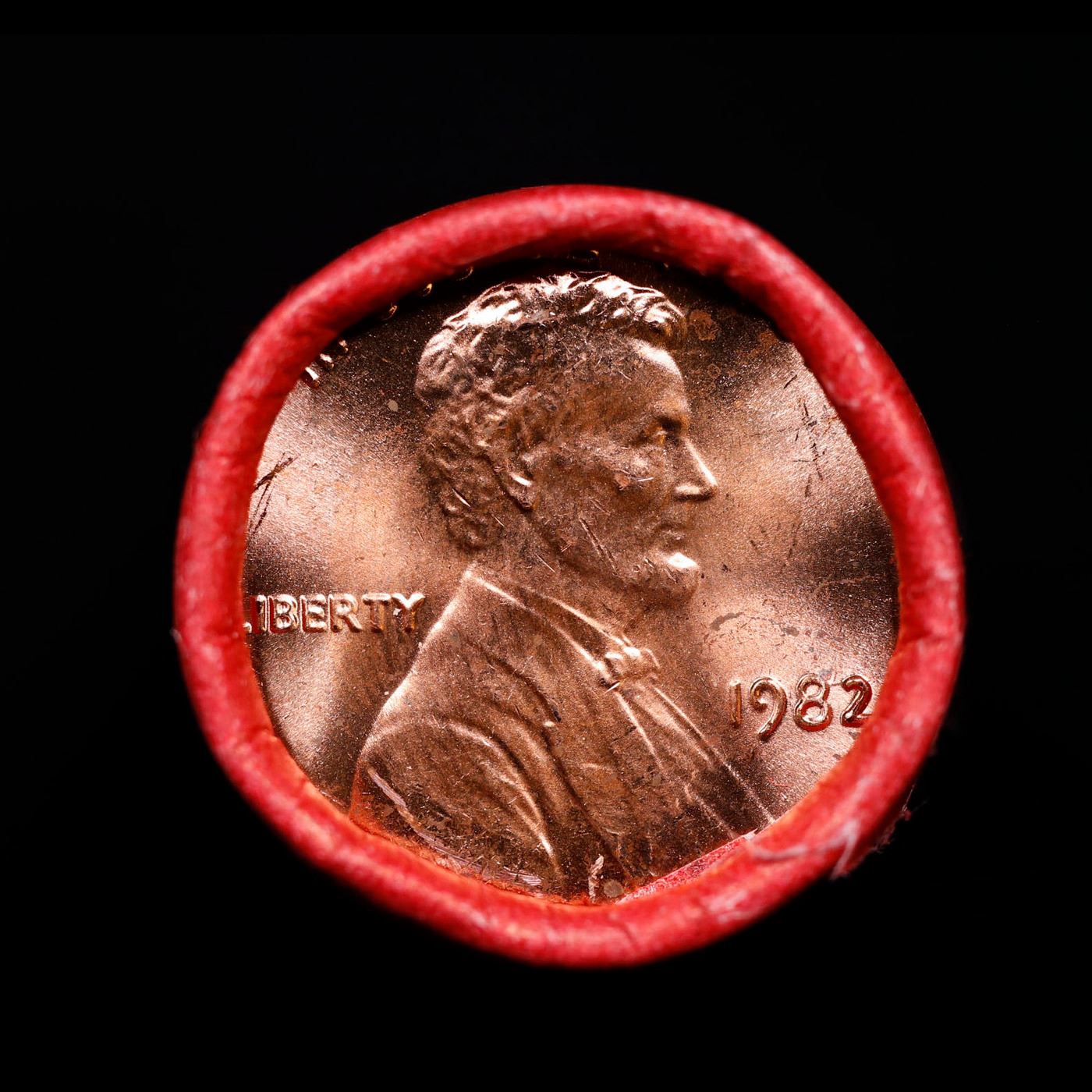 Shotgun Lincoln 1c roll, 1982-p 50 pcs Steel-Strong Wrapper.. A terrific Shotgun roll of Lincoln cents. Most if not all coin should be cherry red.