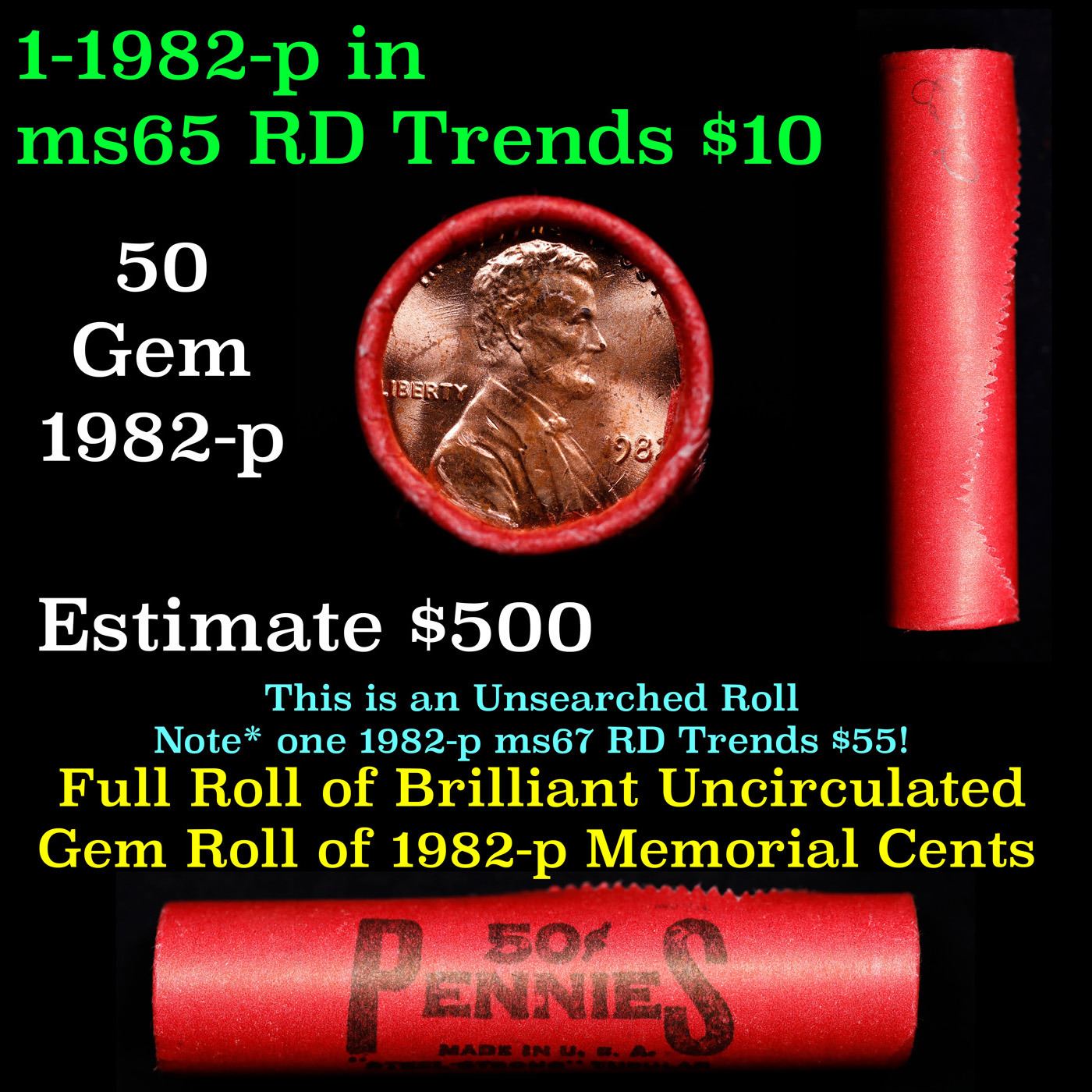 Shotgun Lincoln 1c roll, 1982-p 50 pcs Steel-Strong Wrapper.. A terrific Shotgun roll of Lincoln cents. Most if not all coin should be cherry red.