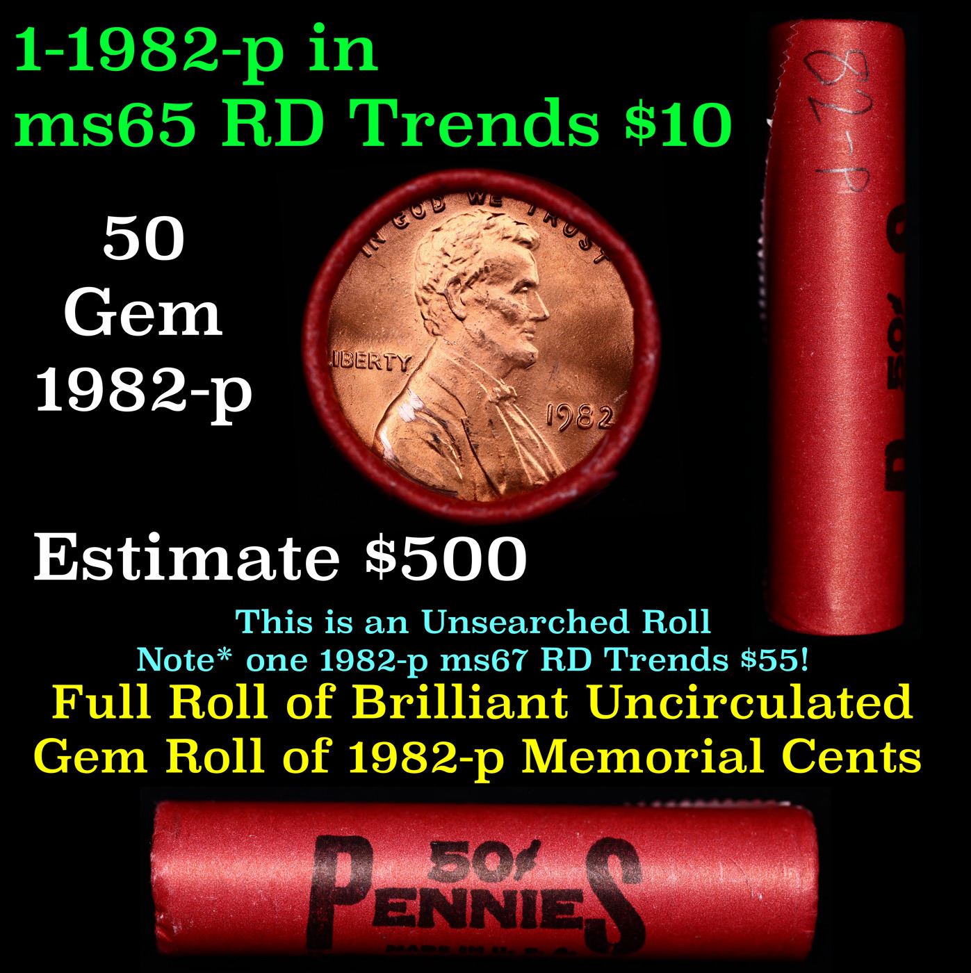 Shotgun Lincoln 1c roll, 1982-p 50 pcs Steel Strong Wrapper.. A terrific Shotgun roll of Lincoln cents. Most if not all coin should be cherry red.