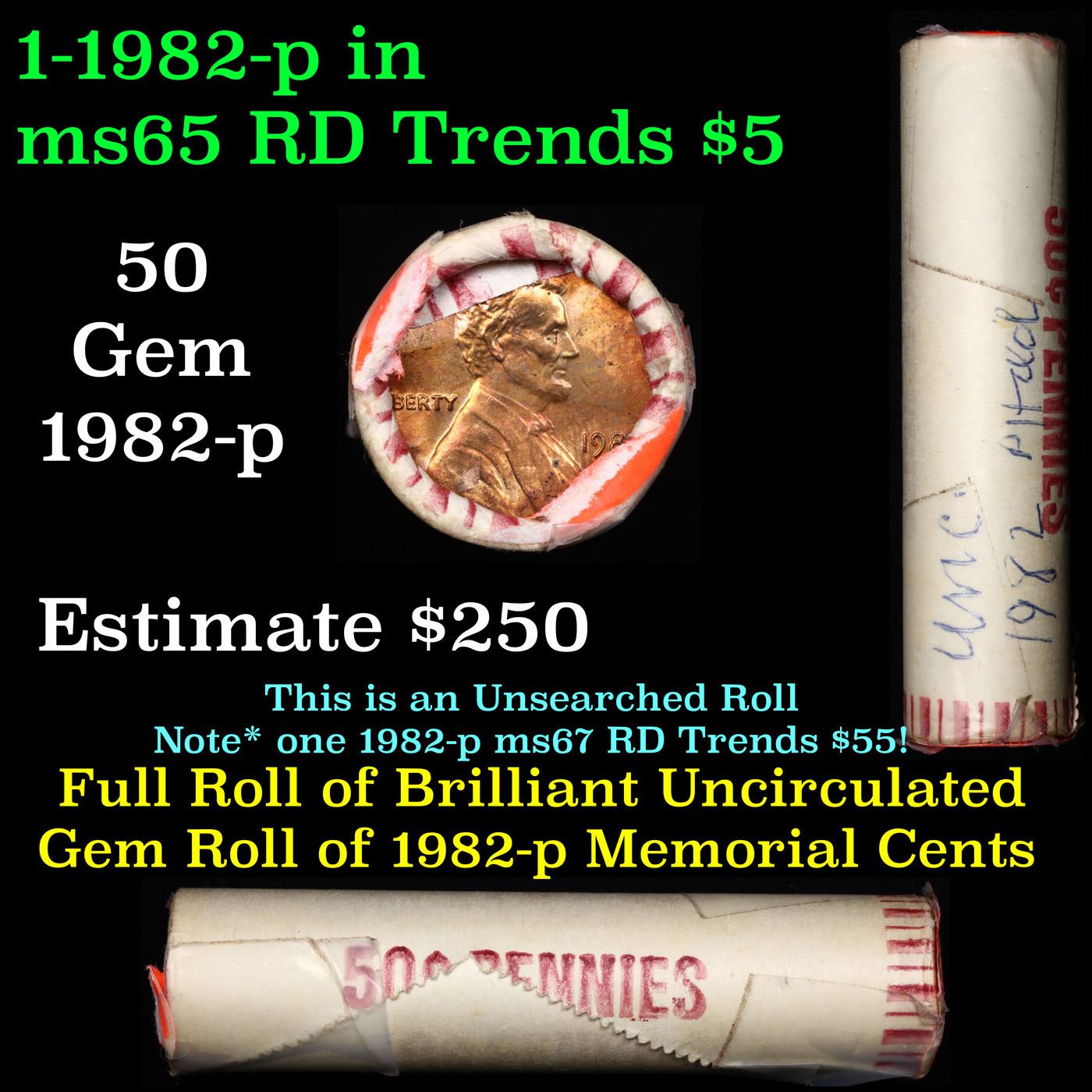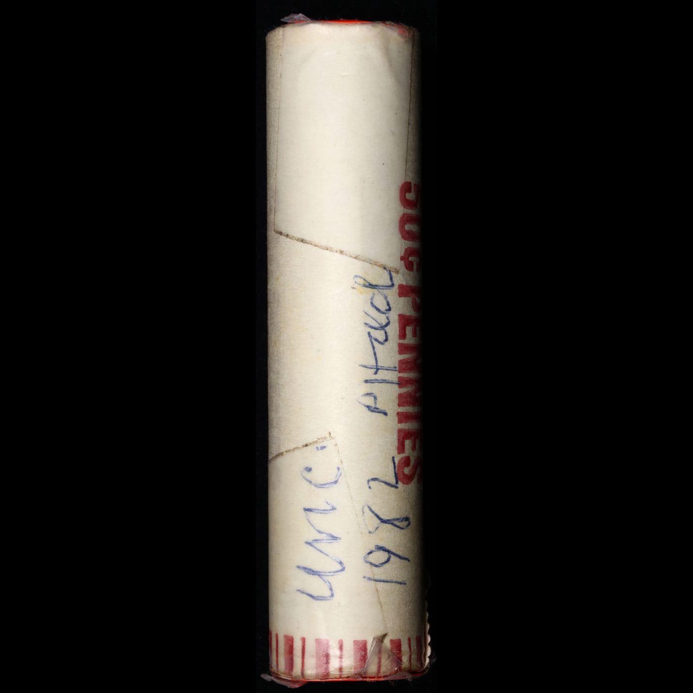 Shotgun Lincoln 1c roll, 1982-p 50 pcs Wrapper . A terrific Shotgun roll of Lincoln cents. All coins cherry red. Trends ms65 rd $6