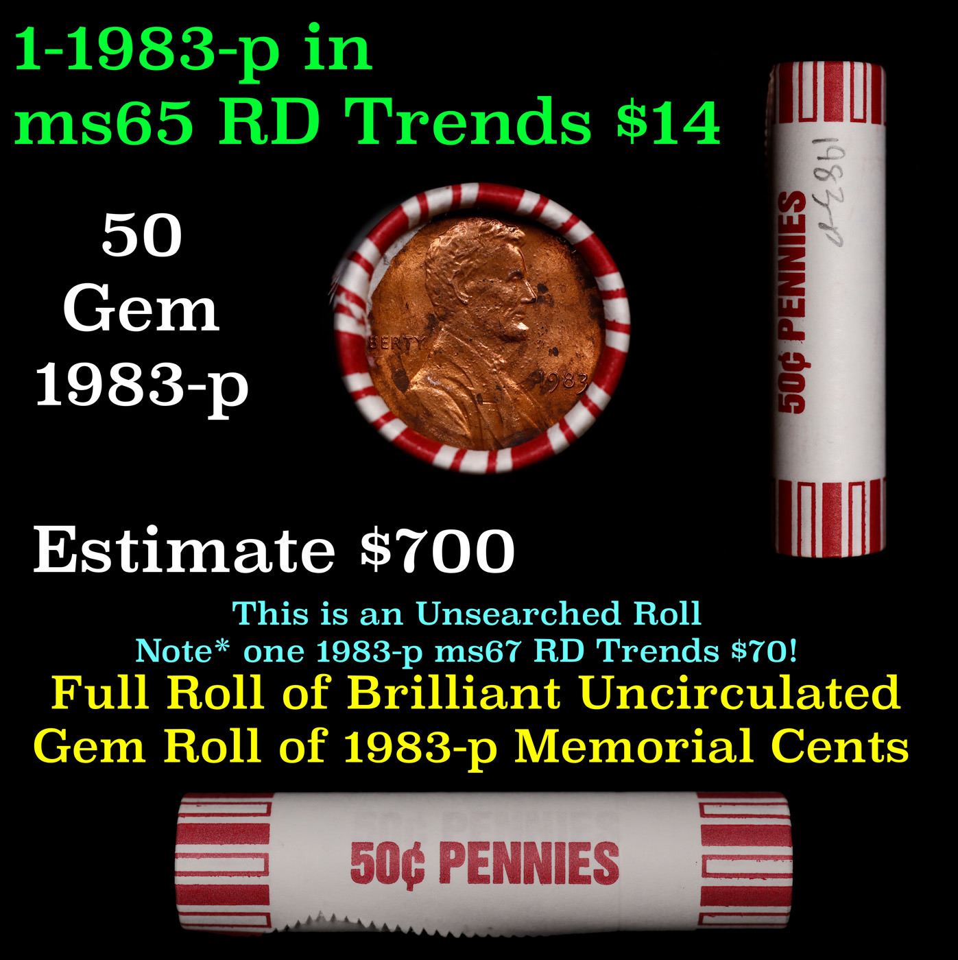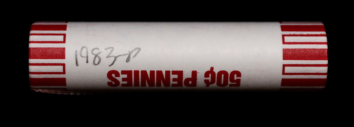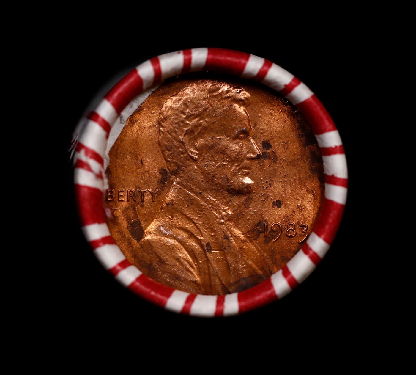 Shotgun Lincoln 1c roll, 1983-p 50 pcs Brandt 50c Wrapper.. A terrific Shotgun roll of Lincoln cents. Most if not all coin should be cherry red.