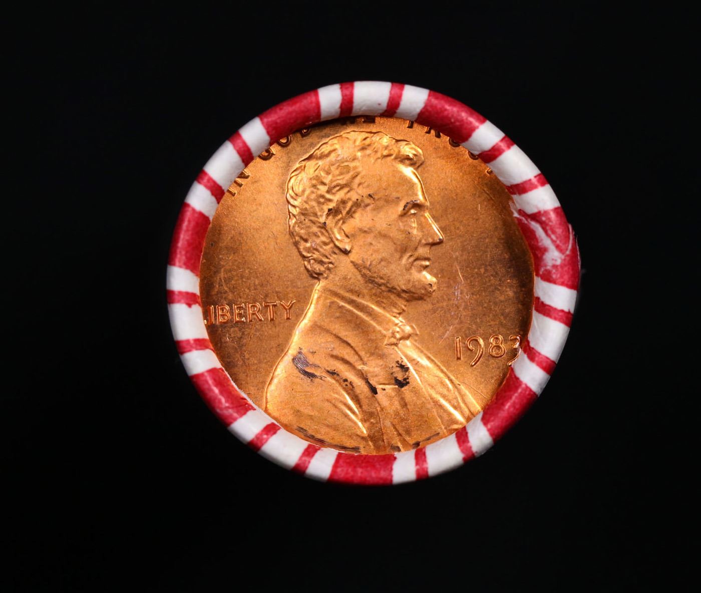 Shotgun Lincoln 1c roll, 1983-p 50 pcs Brandt 50c Wrapper.. A terrific Shotgun roll of Lincoln cents. Most if not all coin should be cherry red.