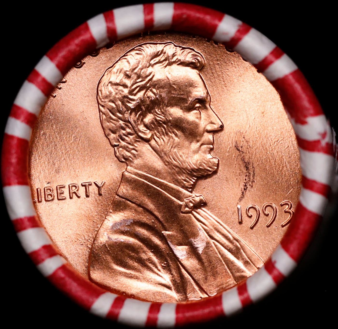 Shotgun Lincoln 1c roll, 1983-p 50 pcs Brandt 50c Wrapper.. A terrific Shotgun roll of Lincoln cents. Most if not all coin should be cherry red.