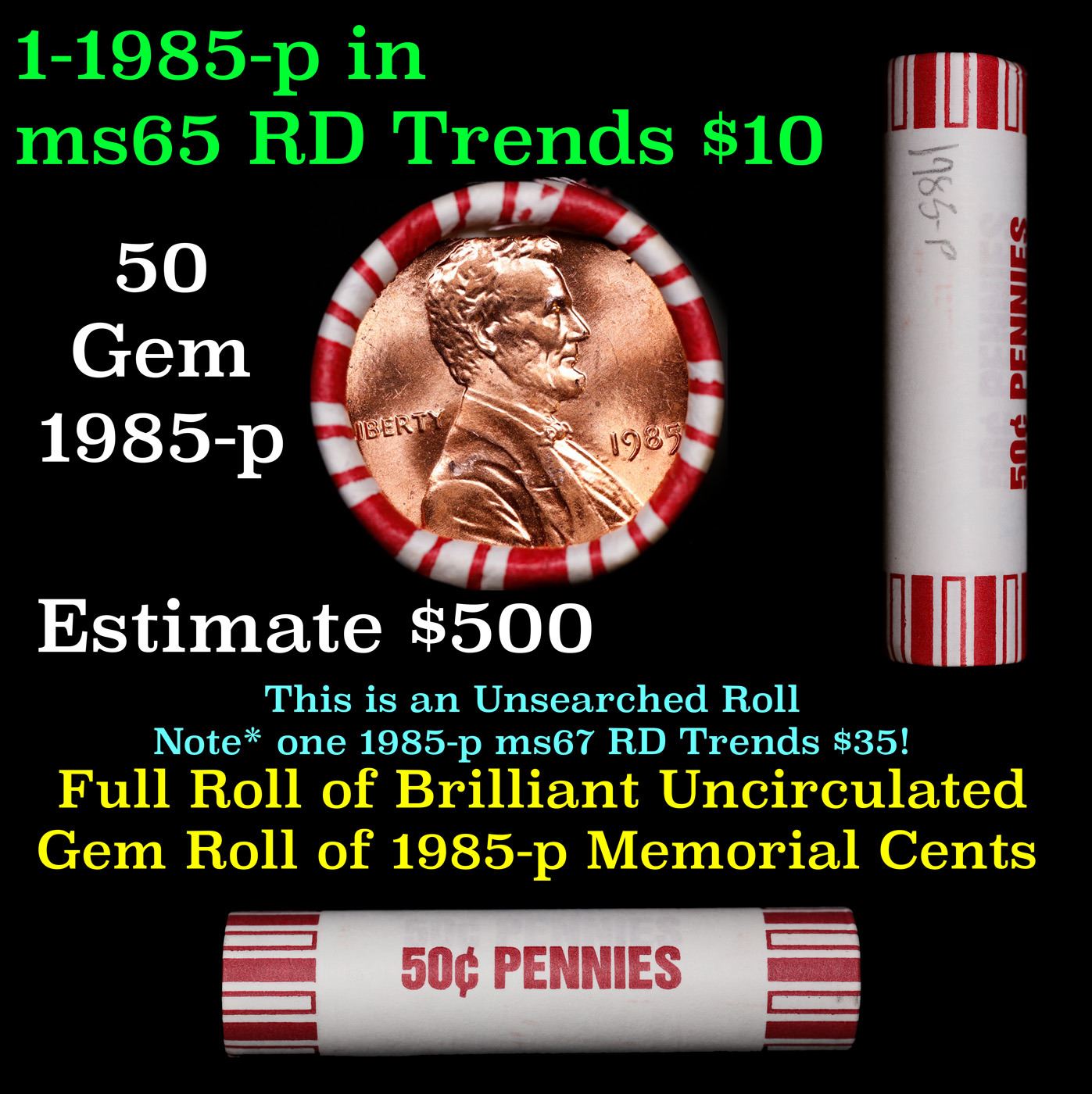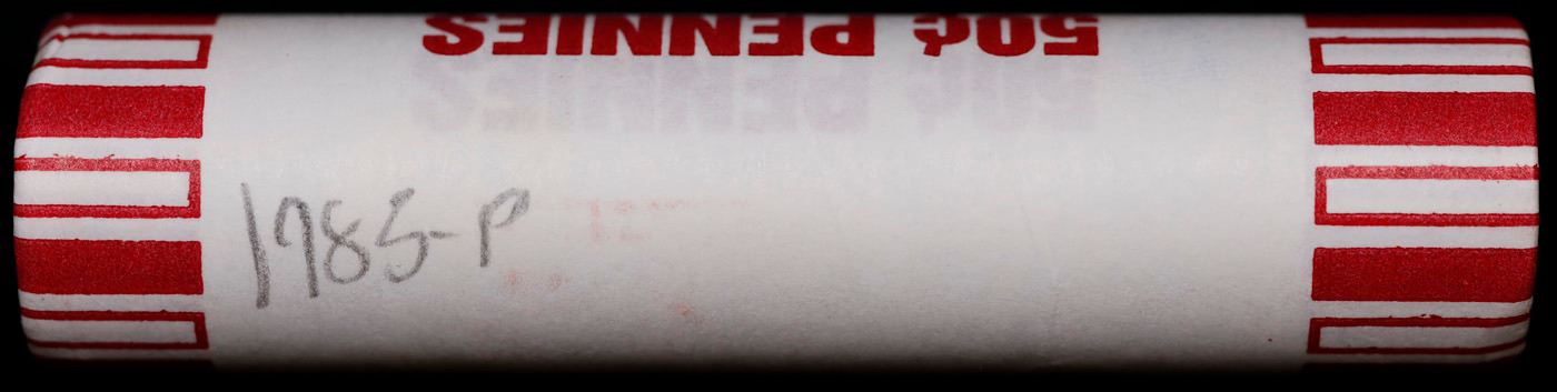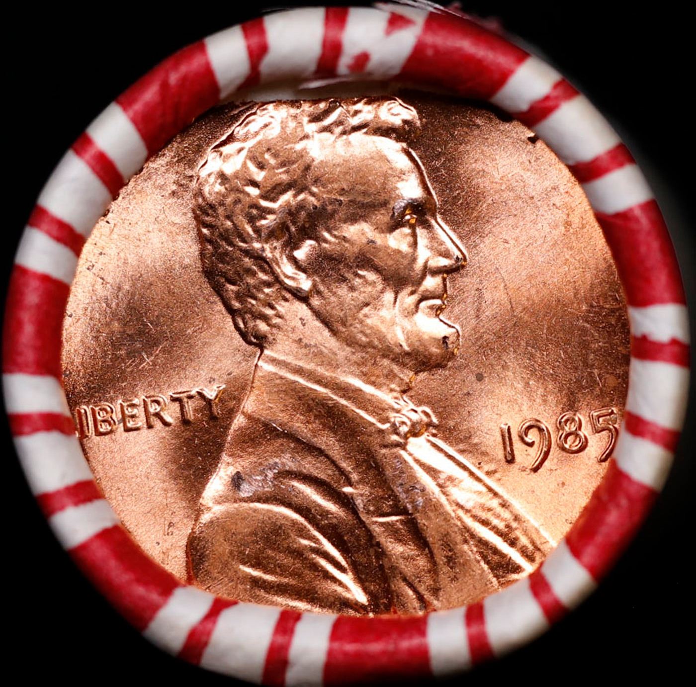 Shotgun Lincoln 1c roll, 1985-p 50 pcs Brandt 50c Wrapper.. A terrific Shotgun roll of Lincoln cents. Most if not all coin should be cherry red.