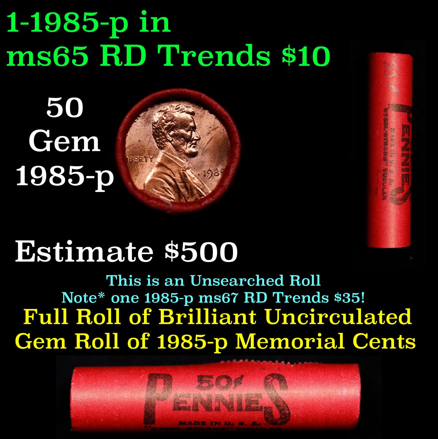 Shotgun Lincoln 1c roll, 1985-p 50 pcs Steel-Strong Wrapper.. A terrific Shotgun roll of Lincoln cents. Most if not all coin should be cherry red.