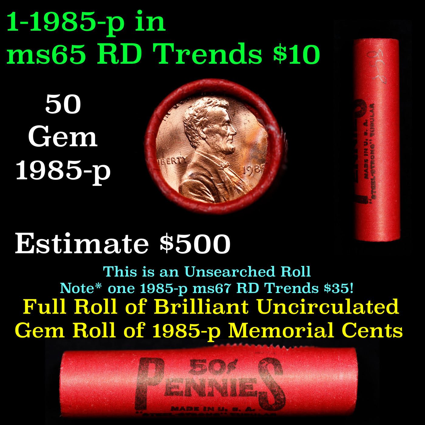 Shotgun Lincoln 1c roll, 1985-p 50 pcs Steel-Strong Wrapper.. A terrific Shotgun roll of Lincoln cents. Most if not all coin should be cherry red.