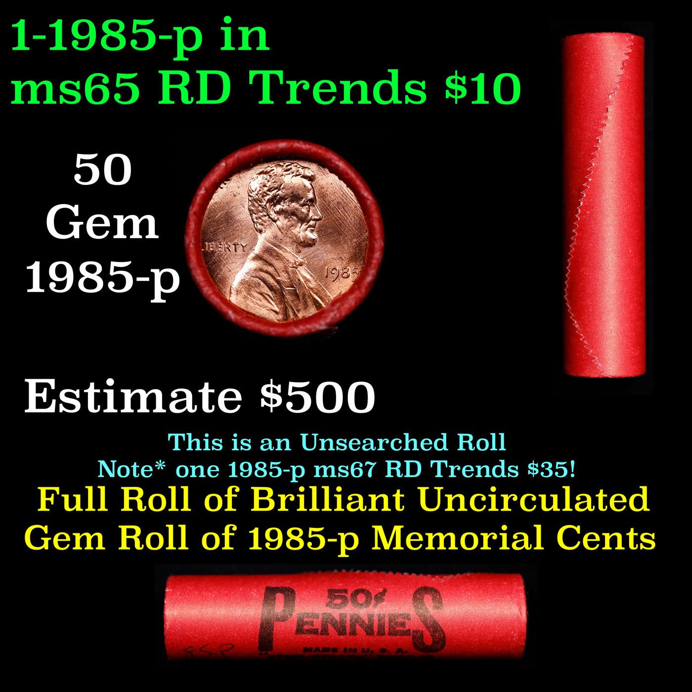 Shotgun Lincoln 1c roll, 1985-p 50 pcs Steel-Strong Wrapper.. A terrific Shotgun roll of Lincoln cents. Most if not all coin should be cherry red.