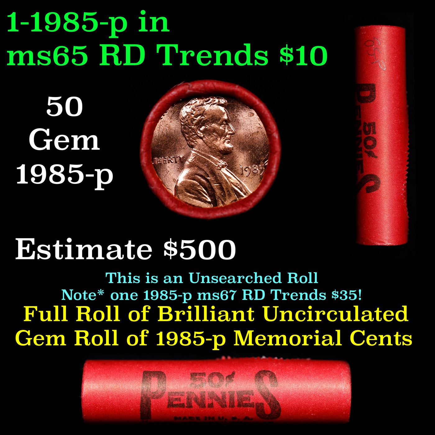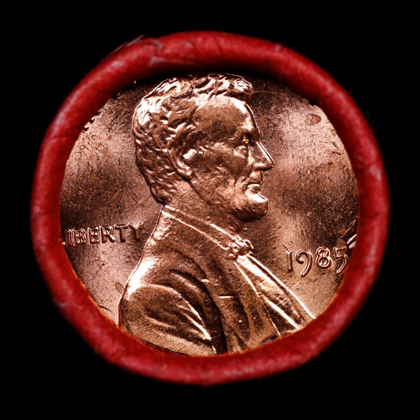 Shotgun Lincoln 1c roll, 1985-p 50 pcs Steel-Strong Wrapper.. A terrific Shotgun roll of Lincoln cents. Most if not all coin should be cherry red.
