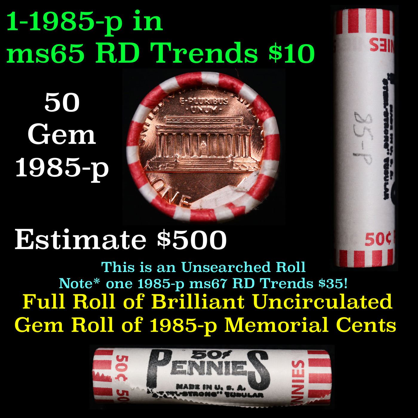 Shotgun Lincoln 1c roll, 1985-p 50 pcs Steel Strong Wrapper.. A terrific Shotgun roll of Lincoln cents. Most if not all coin should be cherry red.