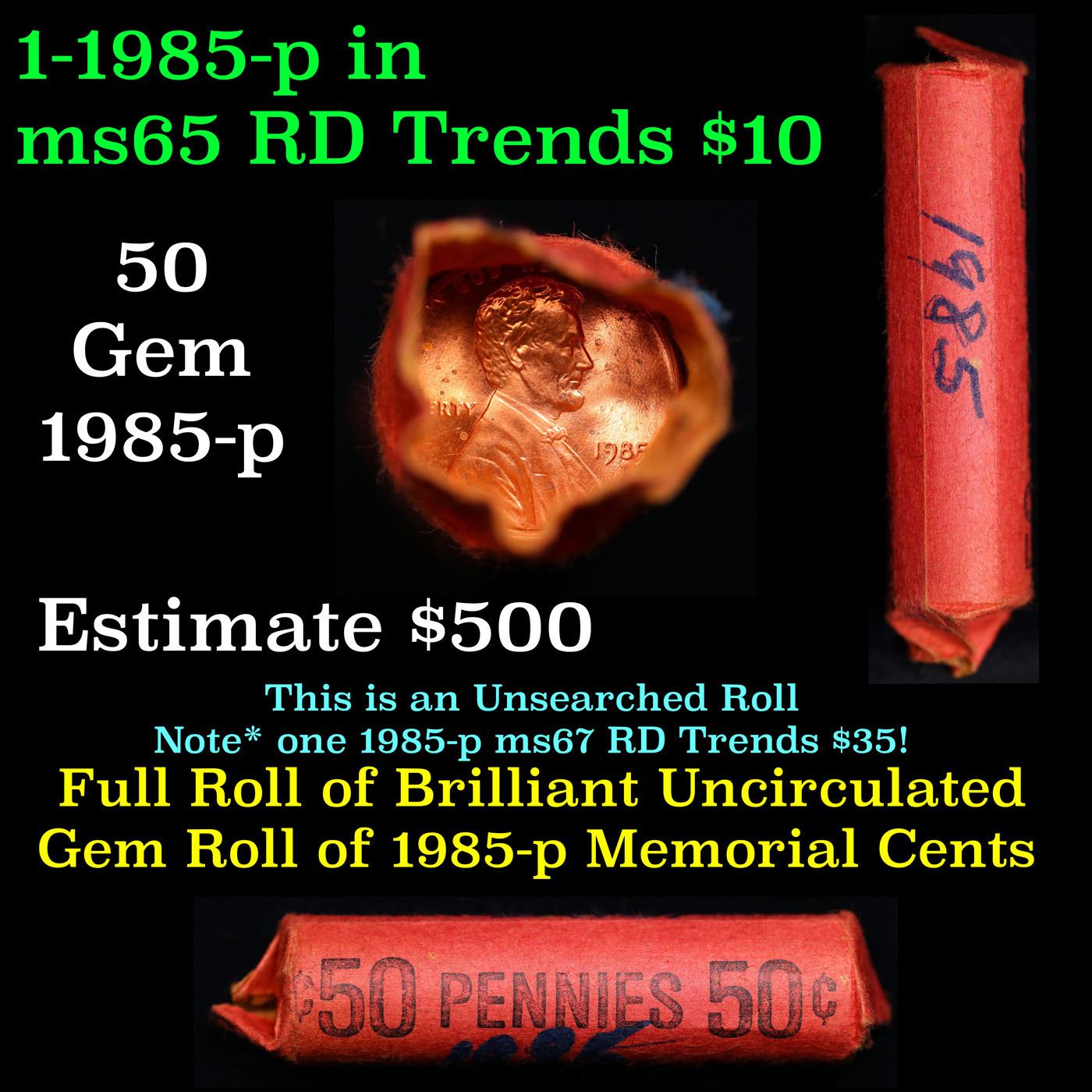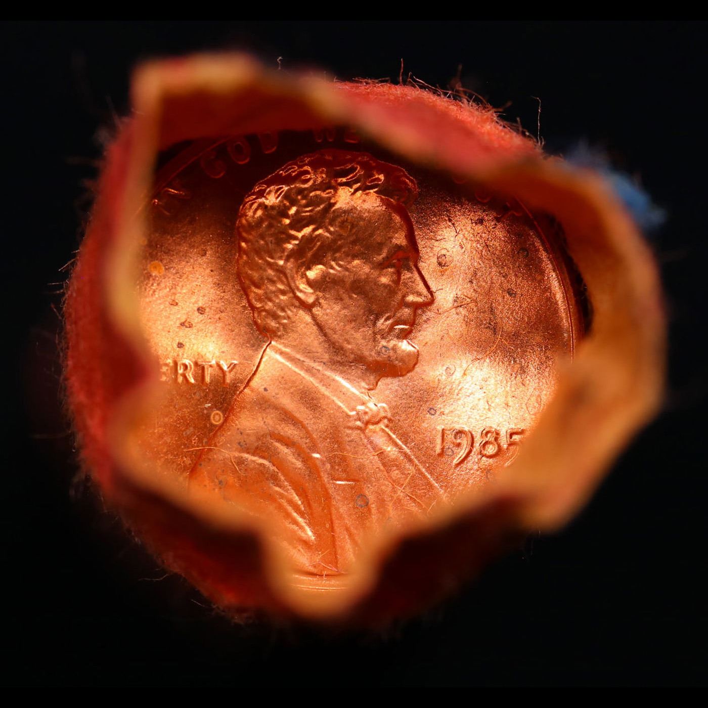 Shotgun Lincoln 1c roll, 1985-p 50 pcs Wrapper.. A terrific Shotgun roll of Lincoln cents. Most if not all coin should be cherry red. Trends ms65 rd $10