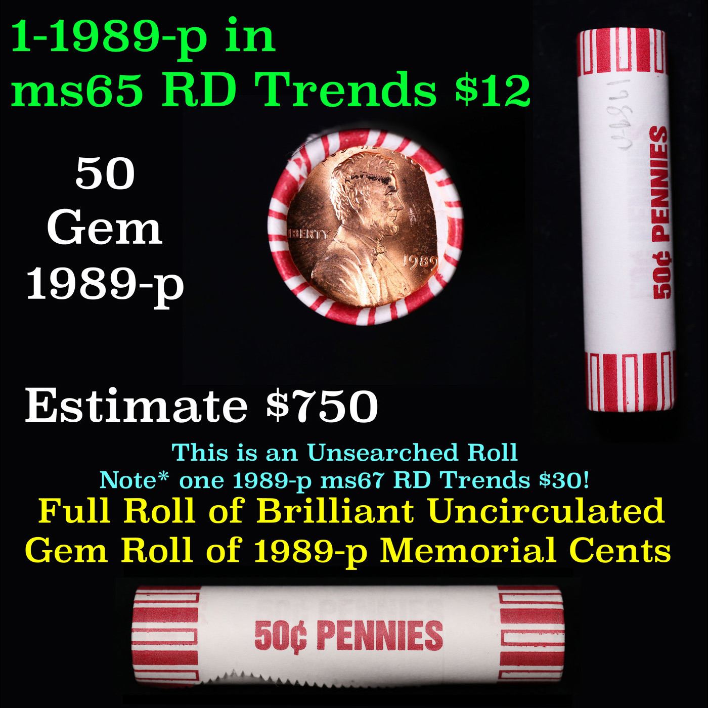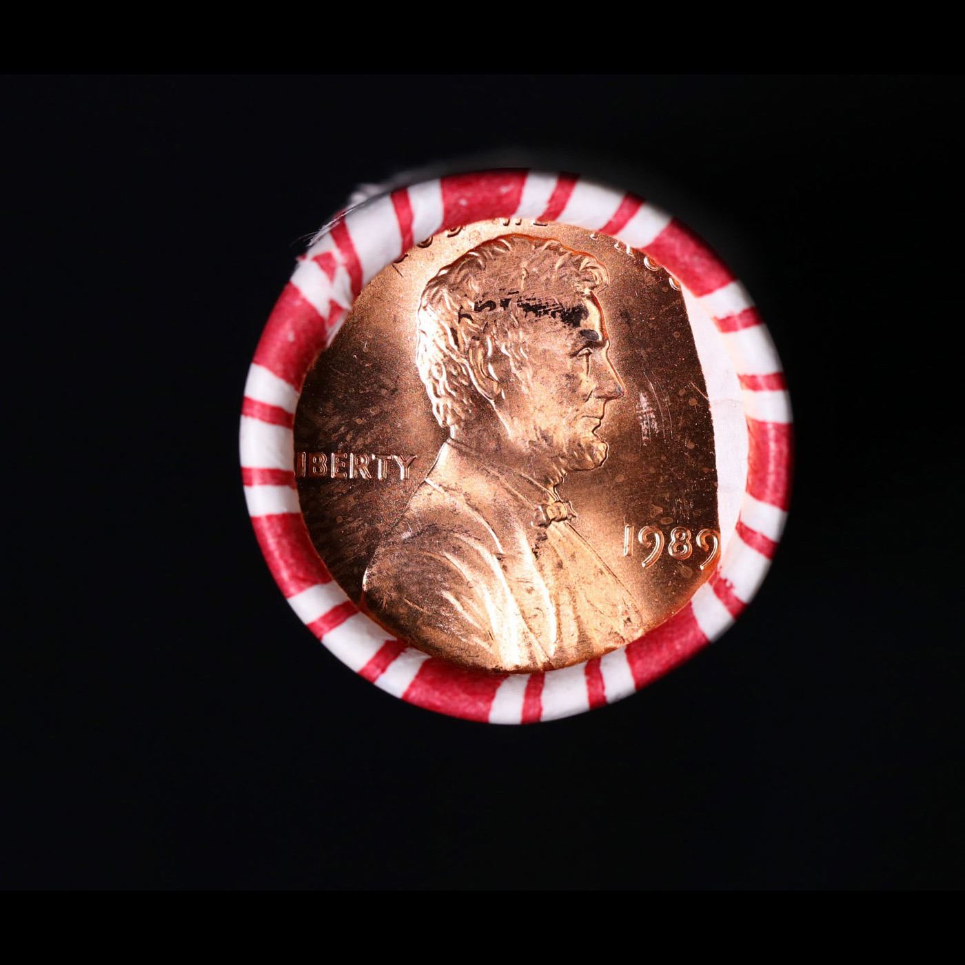Shotgun Lincoln 1c roll, 1989-p 50 pcs Brandt 50c Wrapper.. A terrific Shotgun roll of Lincoln cents. Most if not all coin should be cherry red.