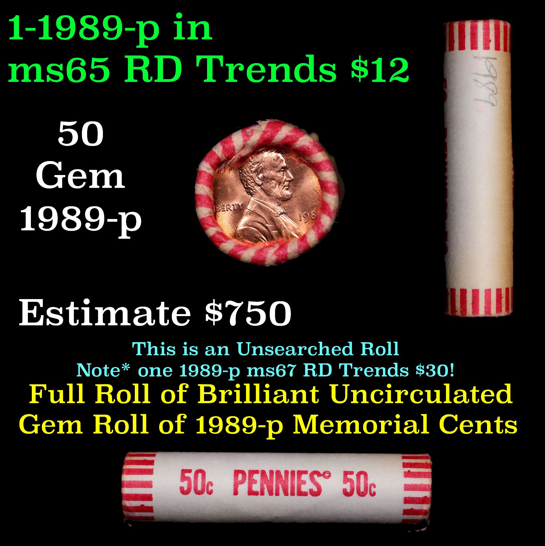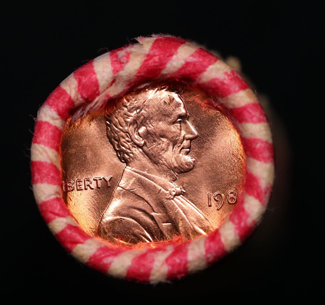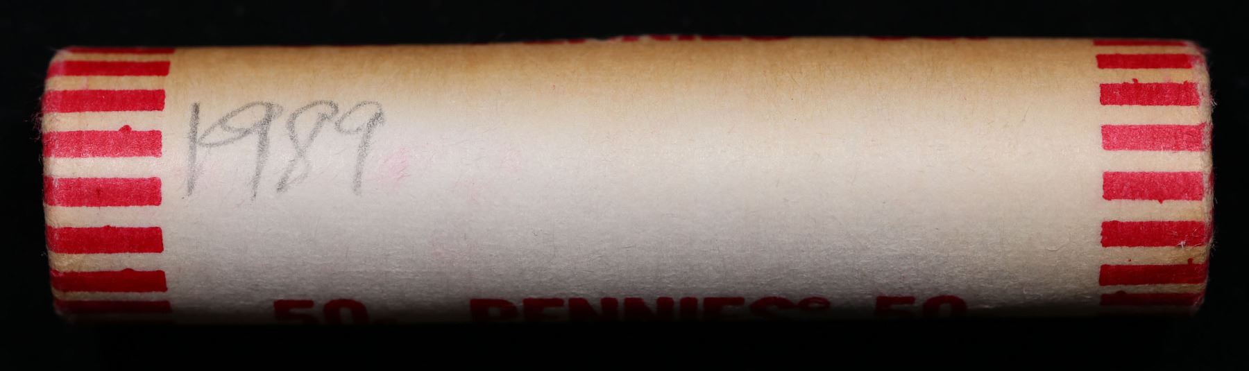 Shotgun Lincoln 1c roll, 1989-p 50 pcs Brandt 50c Wrapper.. A terrific Shotgun roll of Lincoln cents. Most if not all coin should be cherry red.