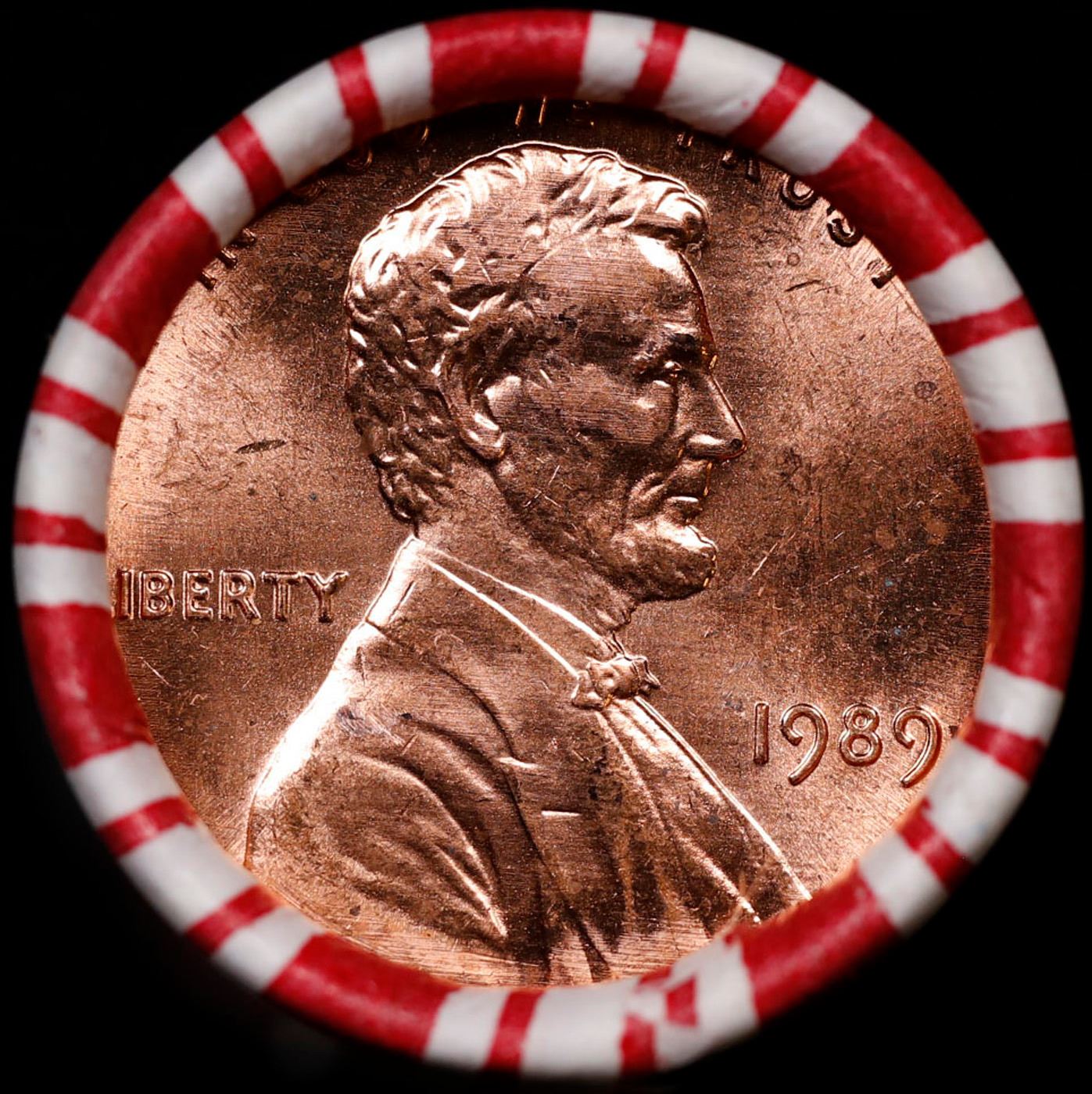 Shotgun Lincoln 1c roll, 1989-p 50 pcs Brandt 50c Wrapper.. A terrific Shotgun roll of Lincoln cents. Most if not all coin should be cherry red.