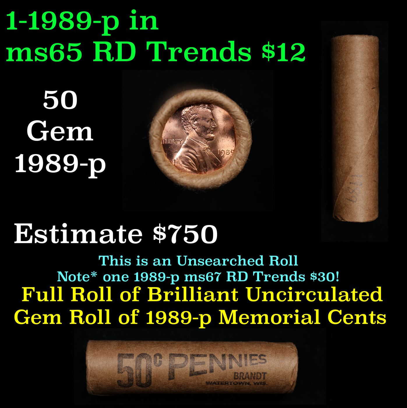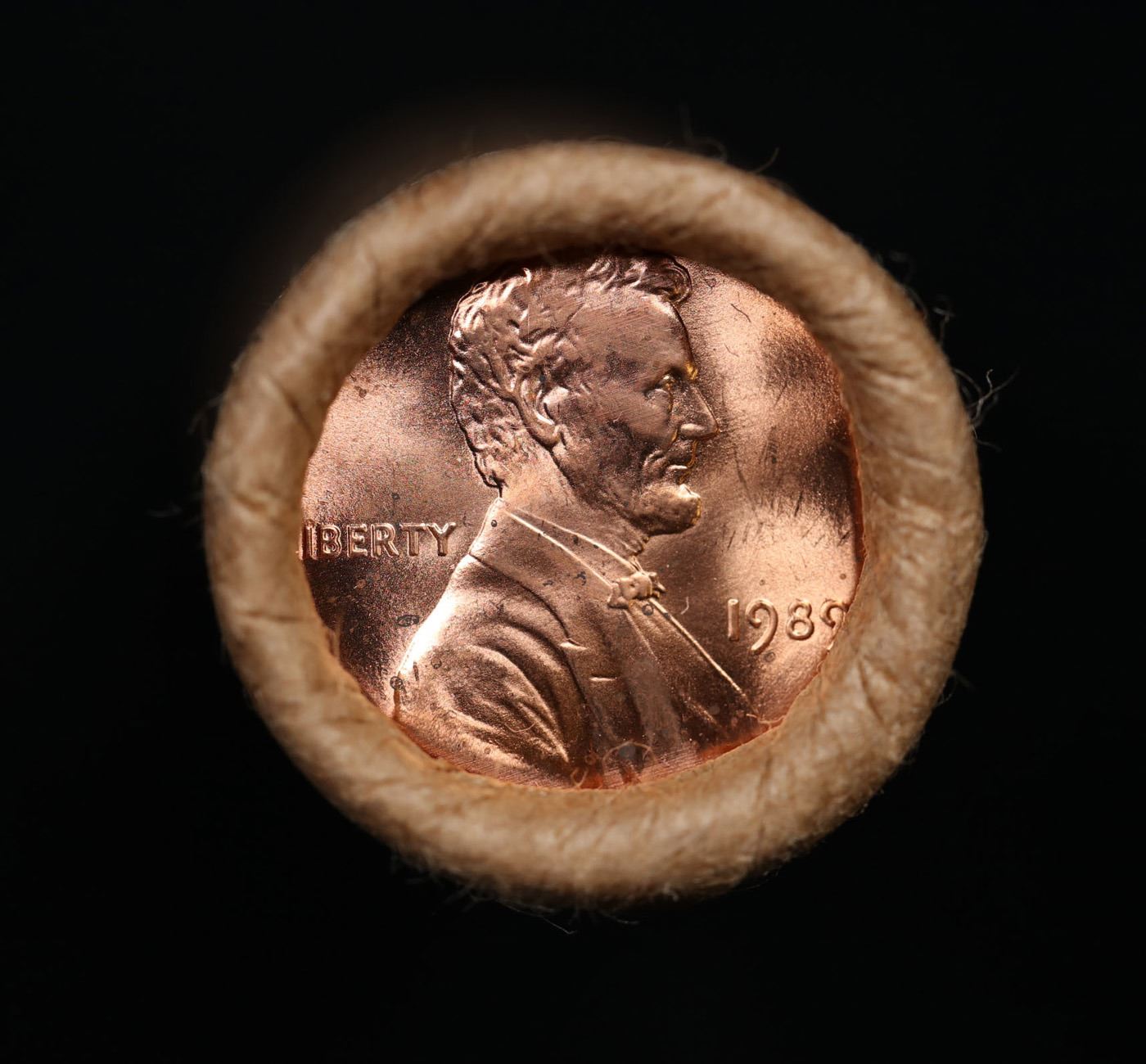 Shotgun Lincoln 1c roll, 1989-p 50 pcs Brandt Wrapper.. A terrific Shotgun roll of Lincoln cents. Most if not all coin should be cherry red.