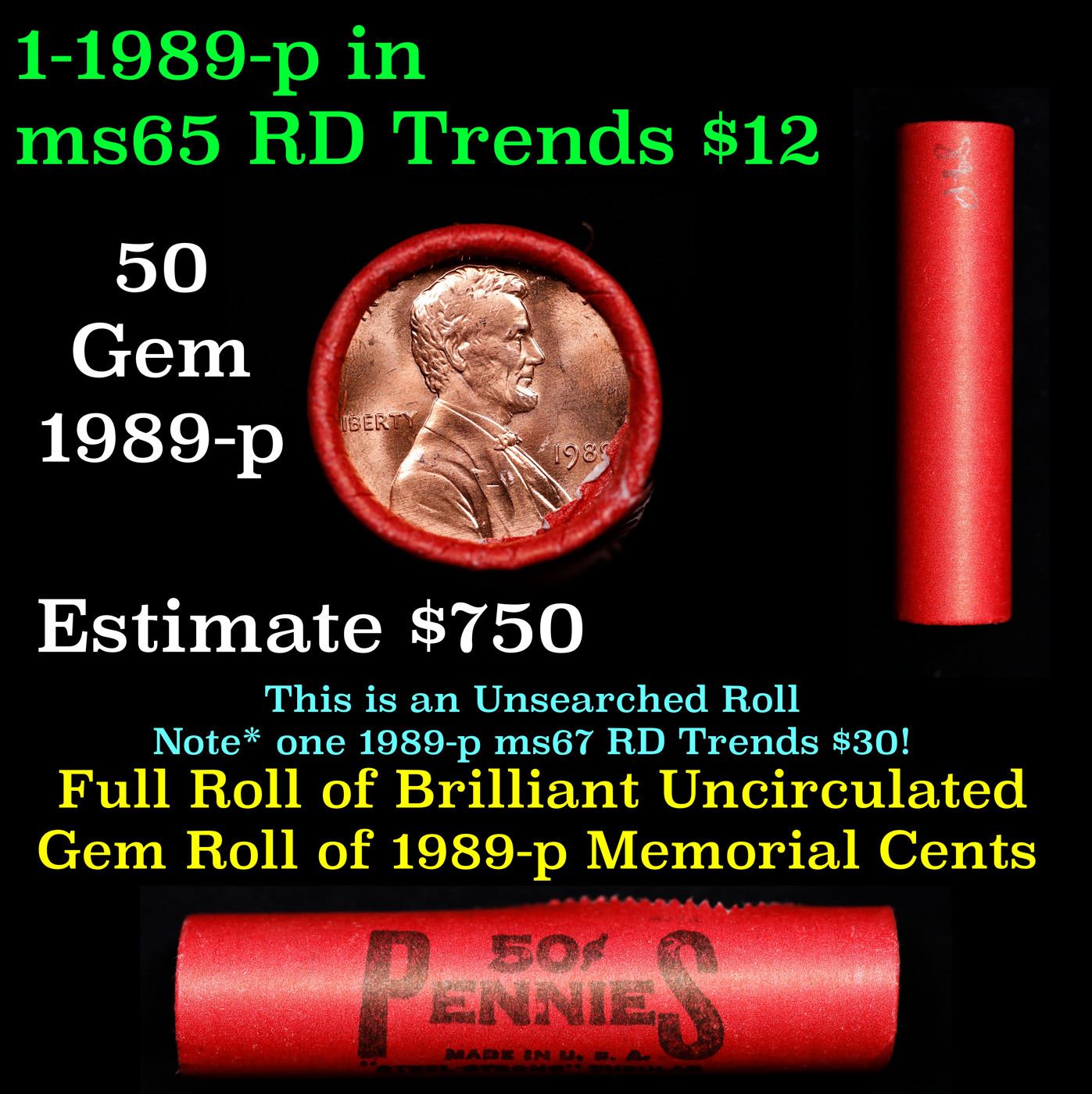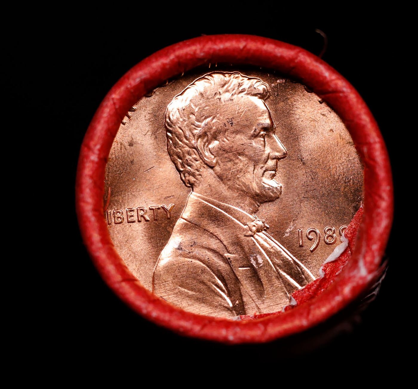 Shotgun Lincoln 1c roll, 1989-p 50 pcs Steel-Strong Wrapper.. A terrific Shotgun roll of Lincoln cents. Most if not all coin should be cherry red.