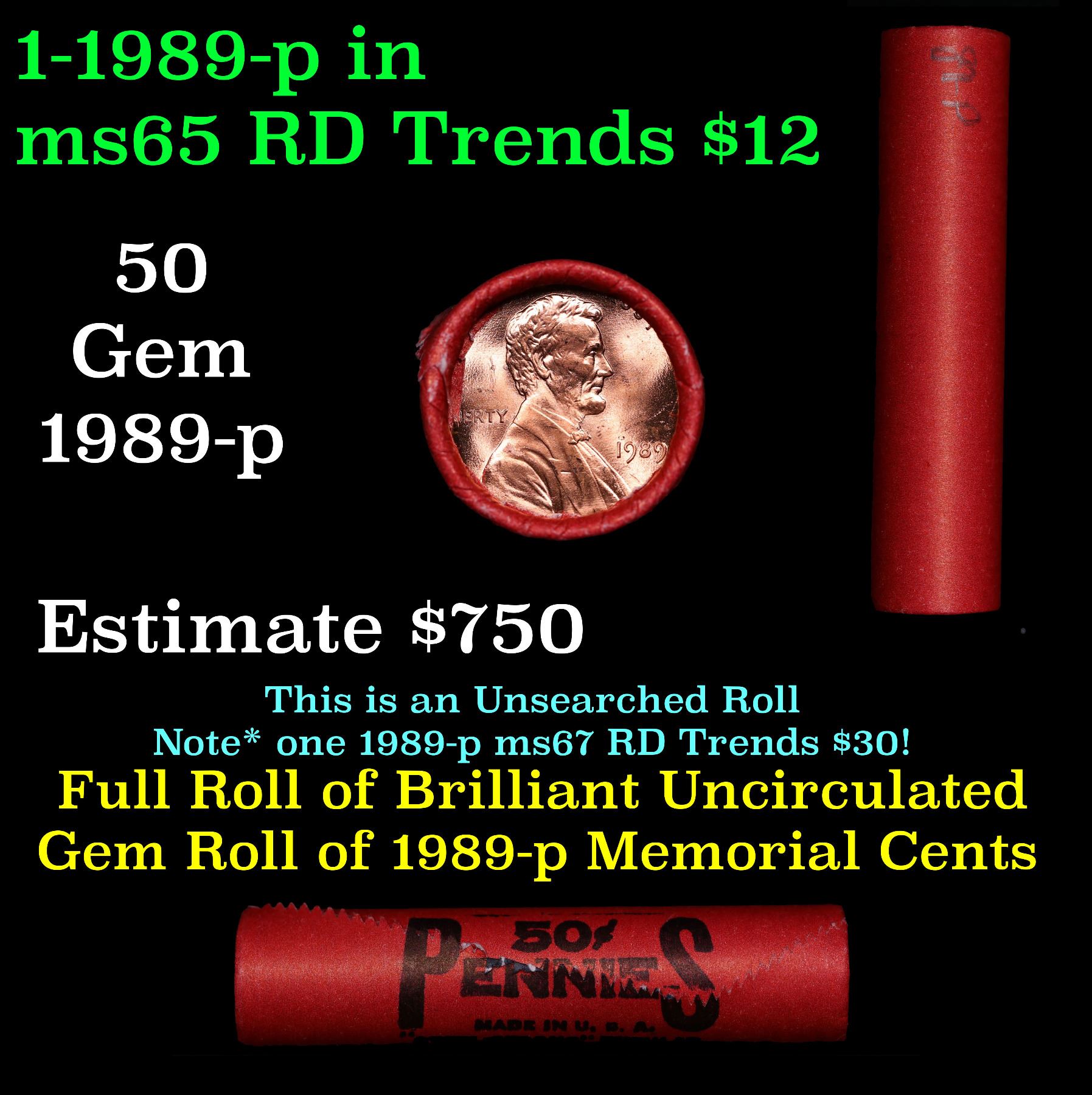Shotgun Lincoln 1c roll, 1989-p 50 pcs Steel-Strong Wrapper.. A terrific Shotgun roll of Lincoln cents. Most if not all coin should be cherry red.