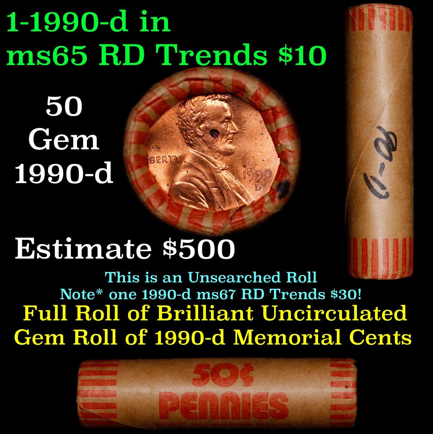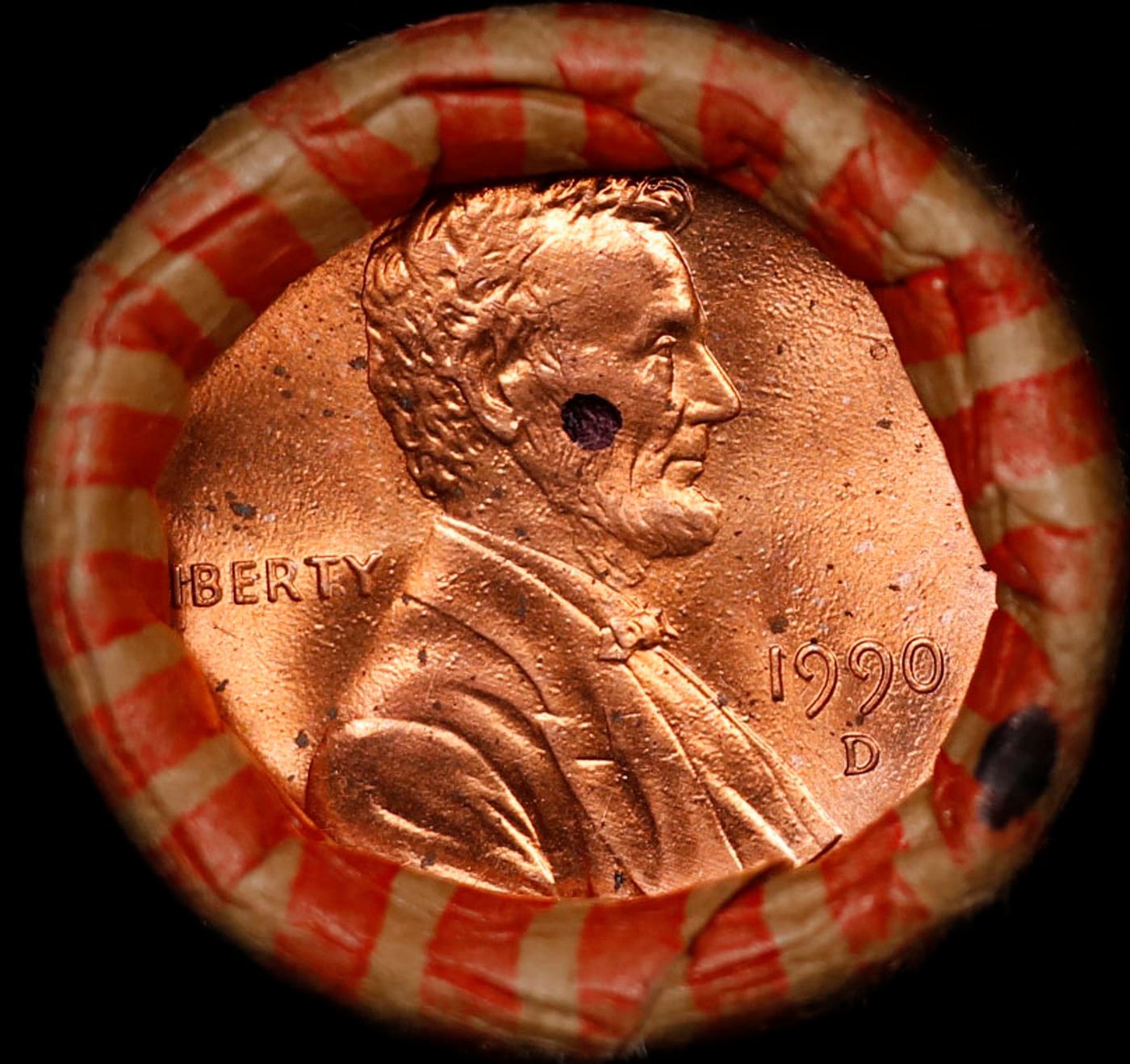 Shotgun Lincoln 1c roll, 1990-d 50 pcs Brandt Wrapper.. A terrific Shotgun roll of Lincoln cents. Most if not all coin should be cherry red.