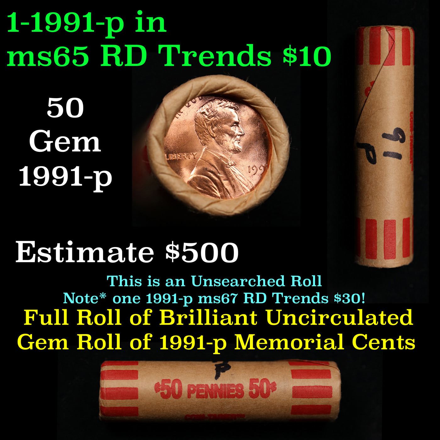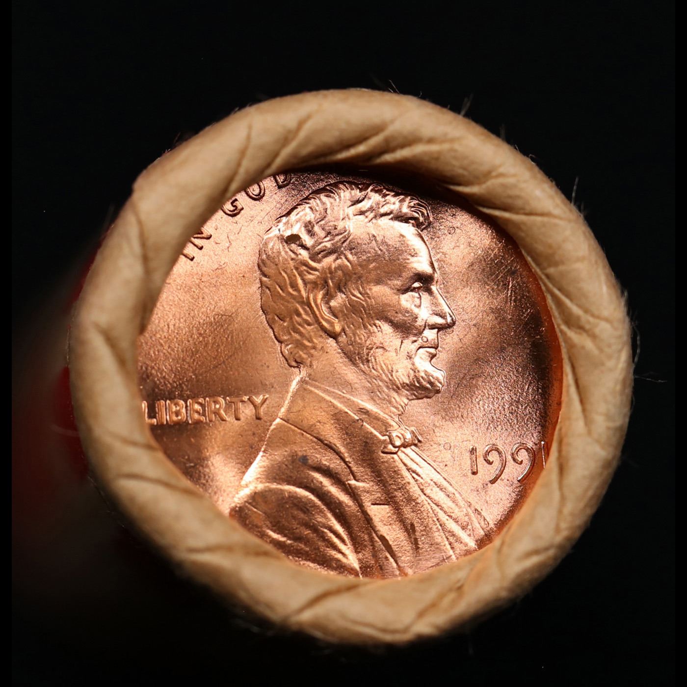 Shotgun Lincoln 1c roll, 1991-p 50 pcs Coin-Tainer Wrapper.. A terrific Shotgun roll of Lincoln cents. Most if not all coin should be cherry red. Trends ms65 rd $12