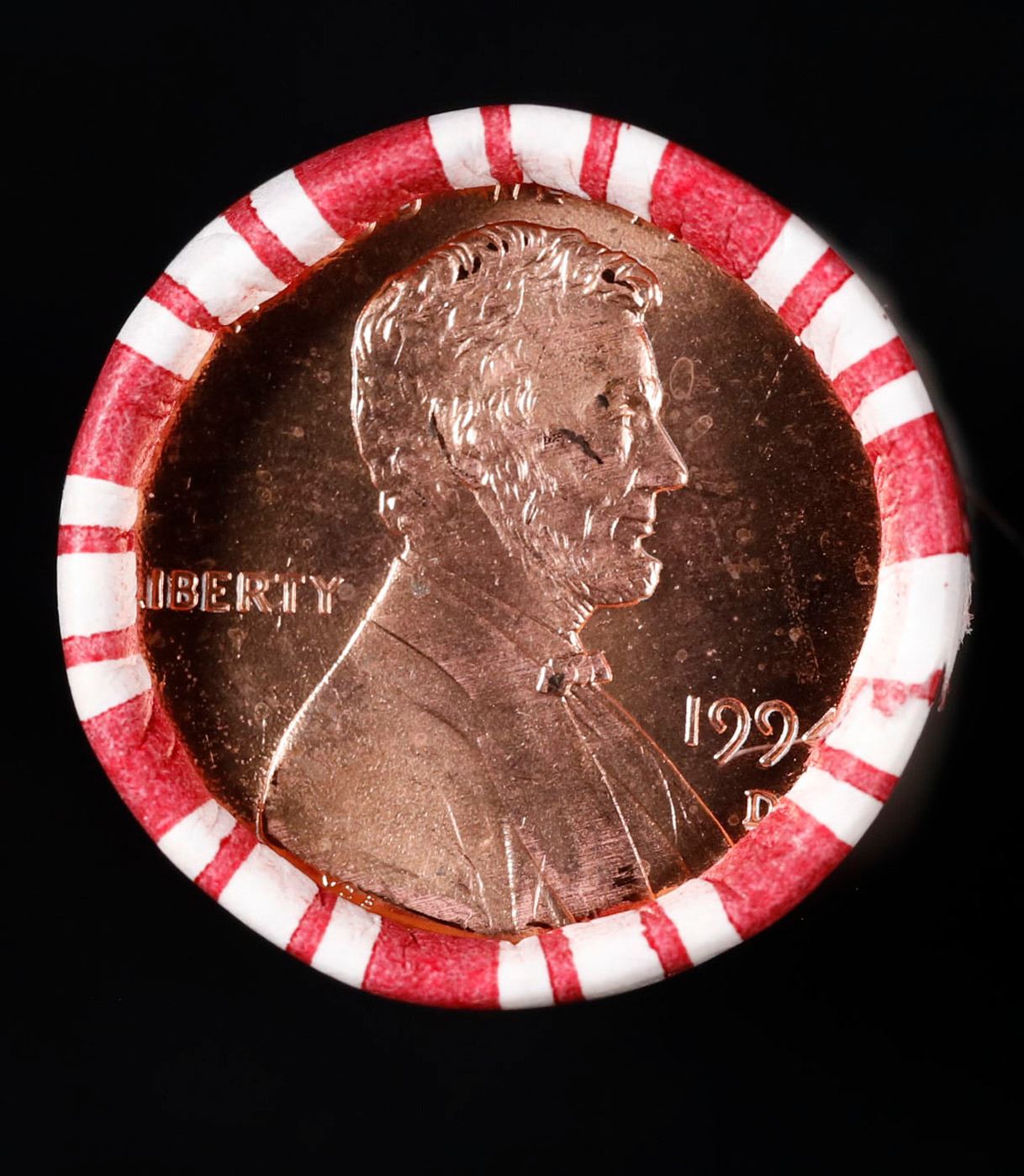 Shotgun Lincoln 1c roll, 1994-d 50 pcs Brandt 50c Wrapper.. A terrific Shotgun roll of Lincoln cents. Most if not all coin should be cherry red.