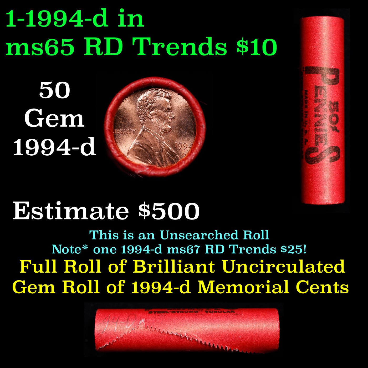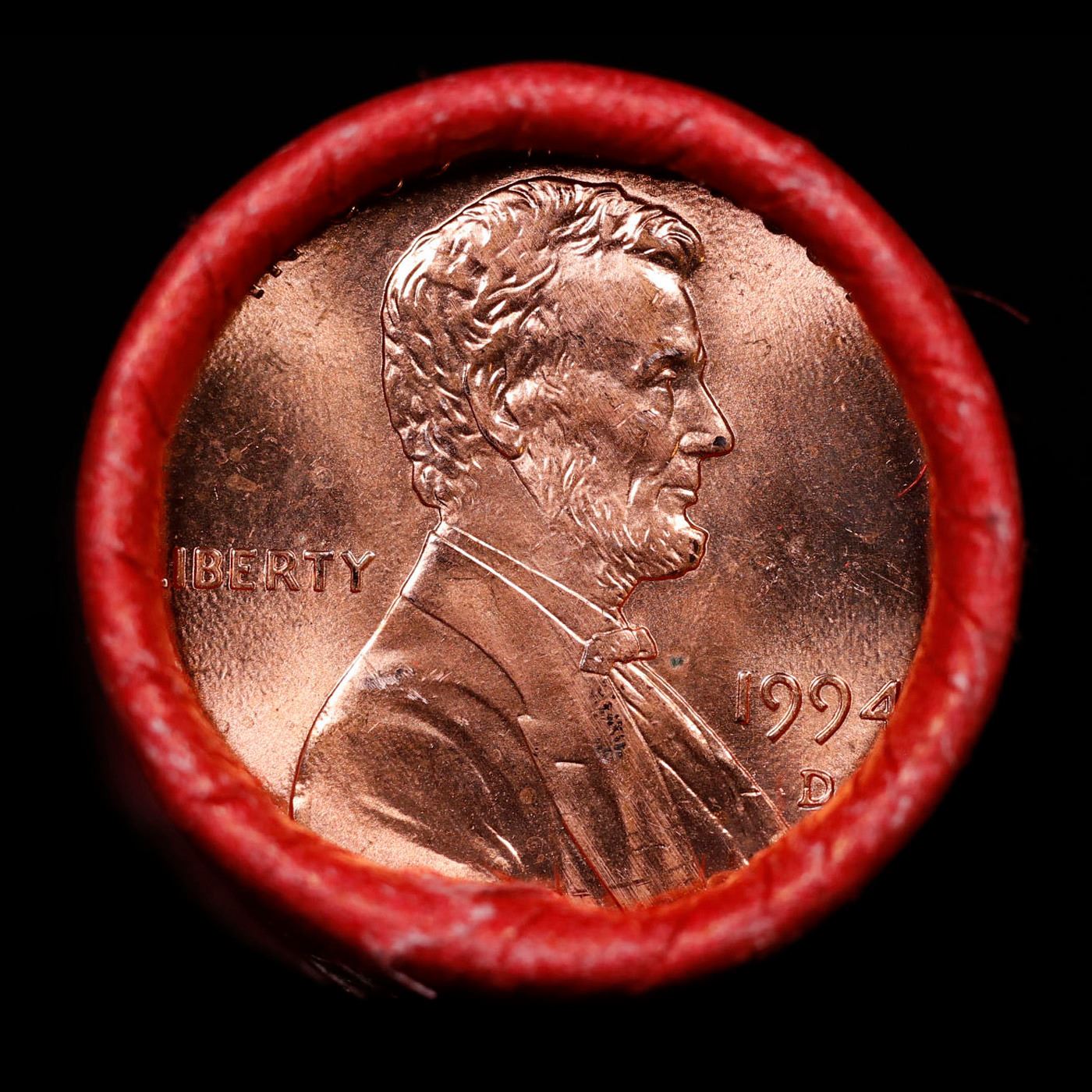 Shotgun Lincoln 1c roll, 1994-d 50 pcs Steel-Strong Wrapper.. A terrific Shotgun roll of Lincoln cents. Most if not all coin should be cherry red.