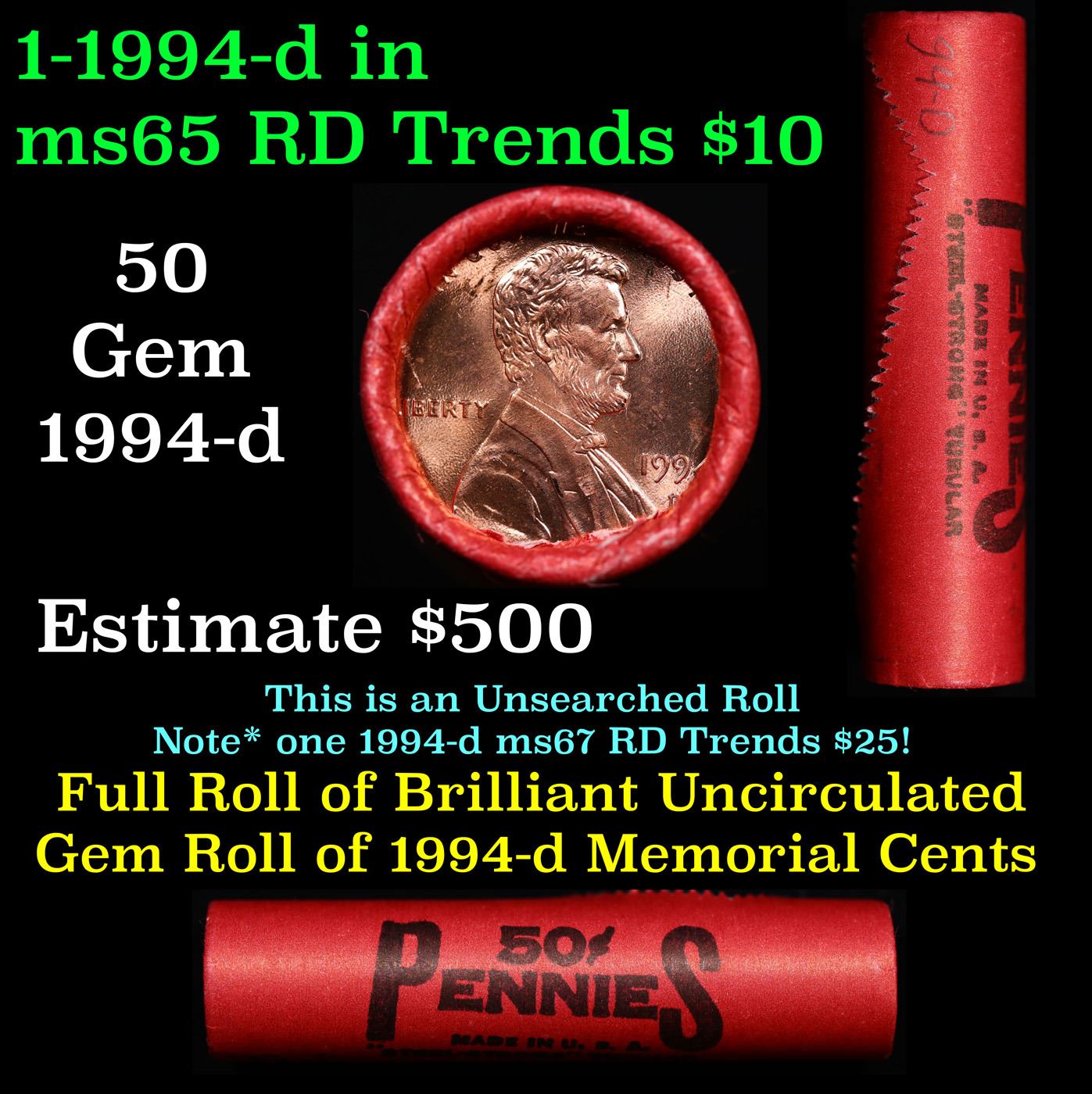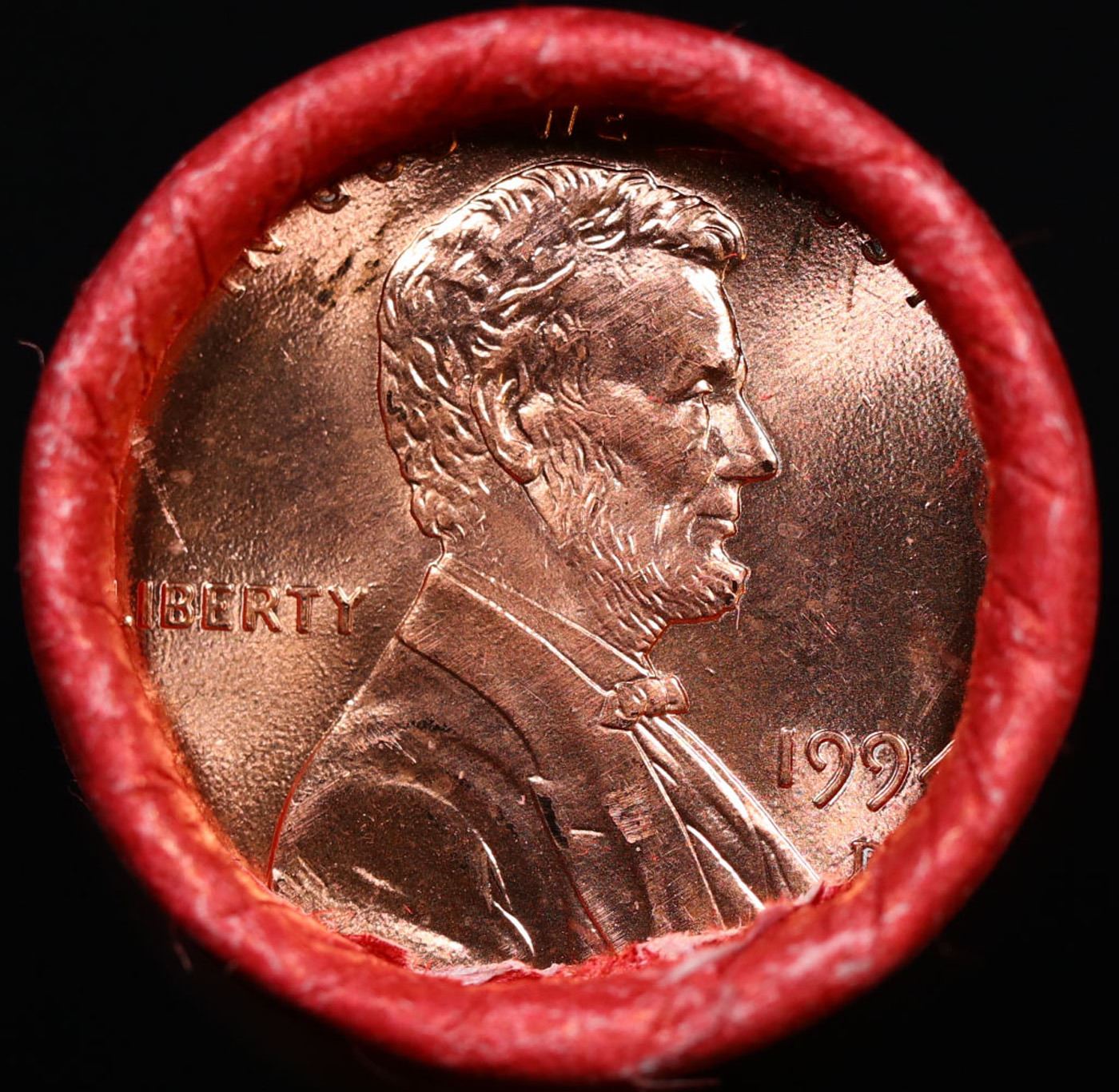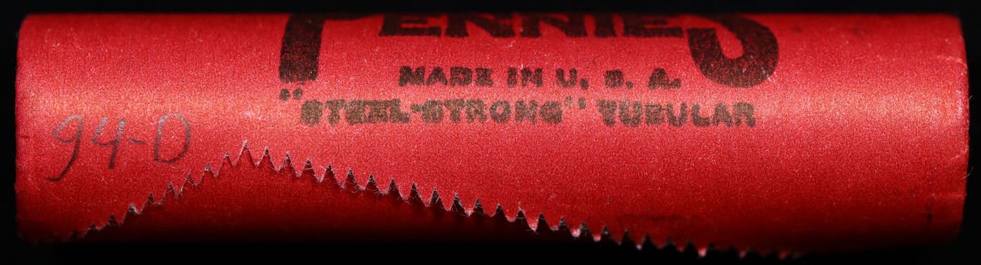 Shotgun Lincoln 1c roll, 1994-d 50 pcs Steel Strong Wrapper.. A terrific Shotgun roll of Lincoln cents. Most if not all coin should be cherry red.