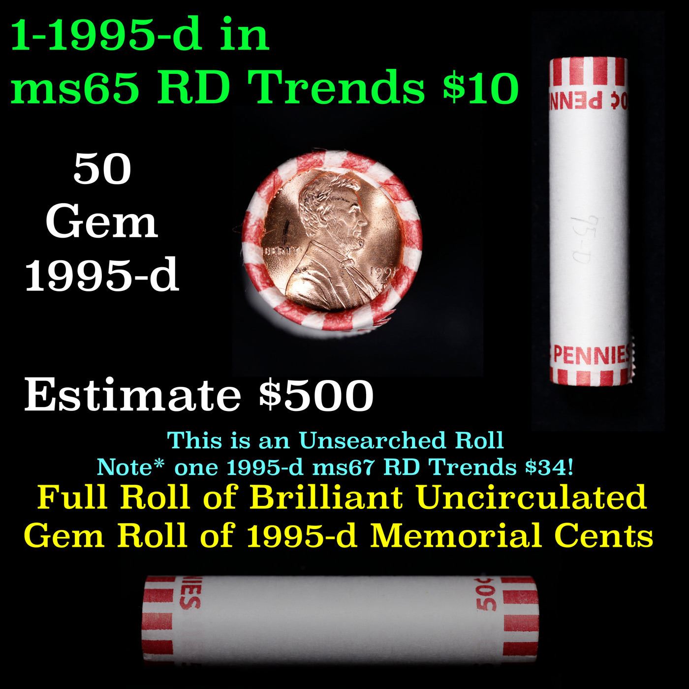 Shotgun Lincoln 1c roll, 1995-d 50 pcs Bank Wrapper.. A terrific Shotgun roll of Lincoln cents. Most if not all coin should be cherry red.