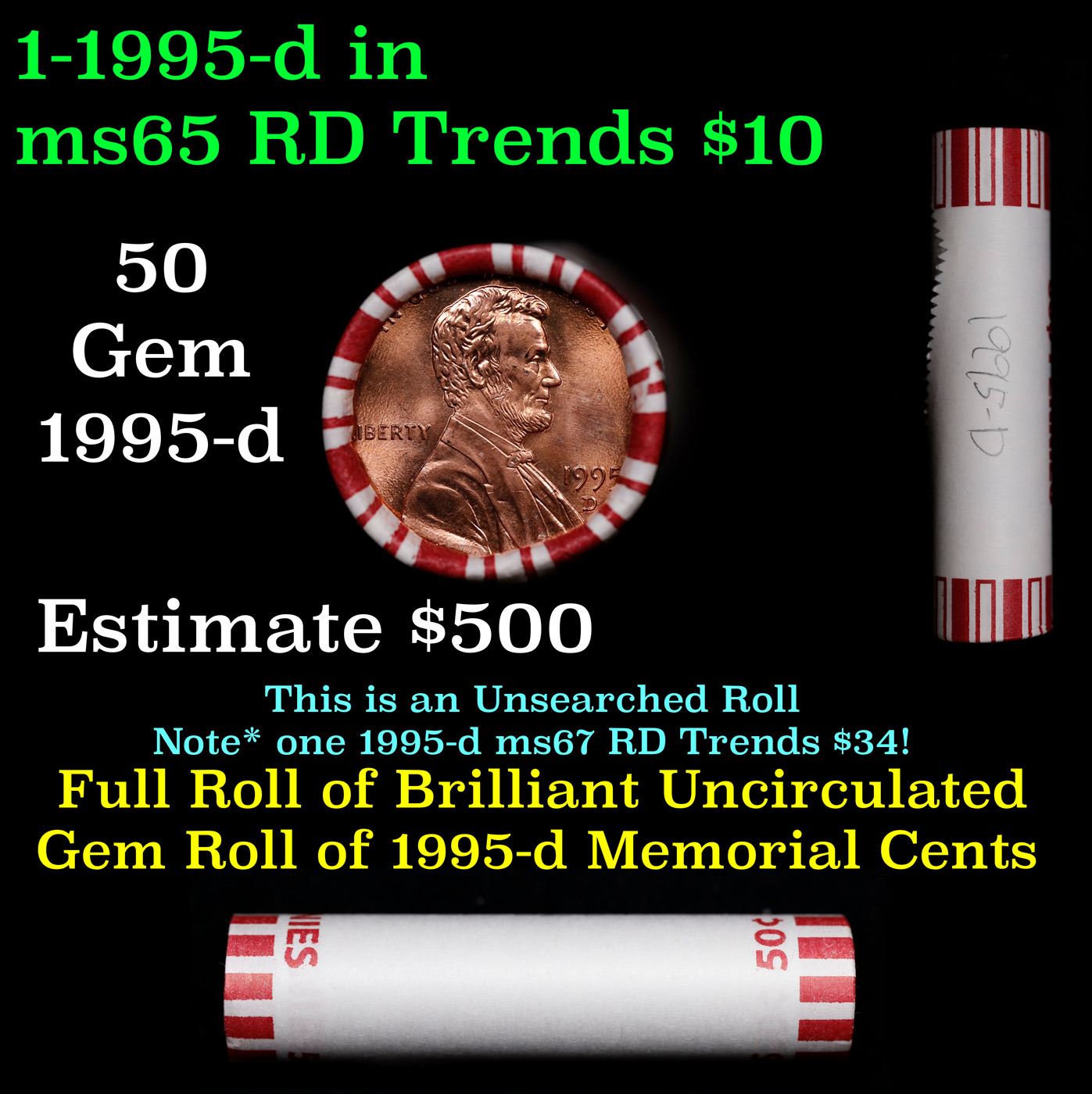 Shotgun Lincoln 1c roll, 1995-d 50 pcs Steel-Strong Wrapper..