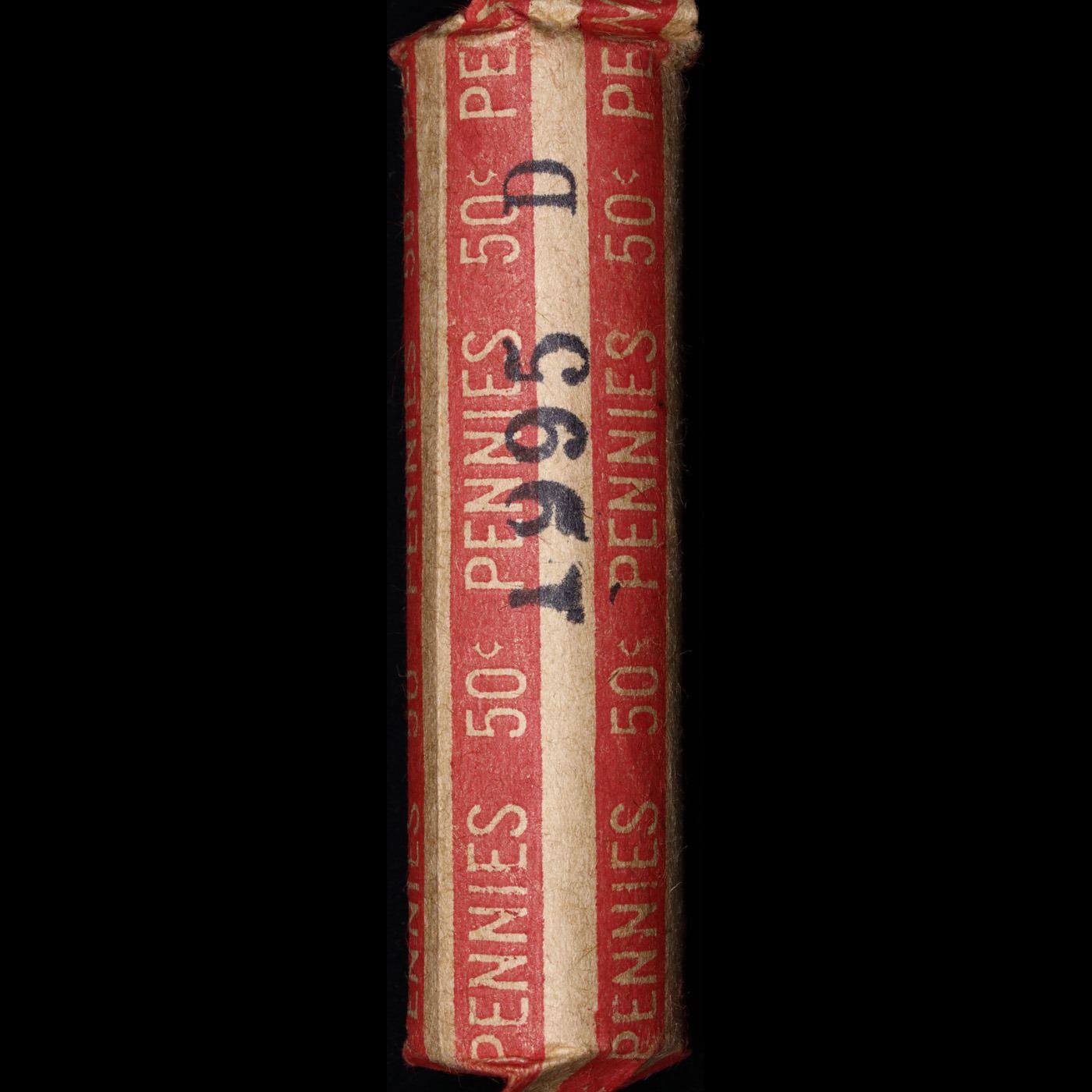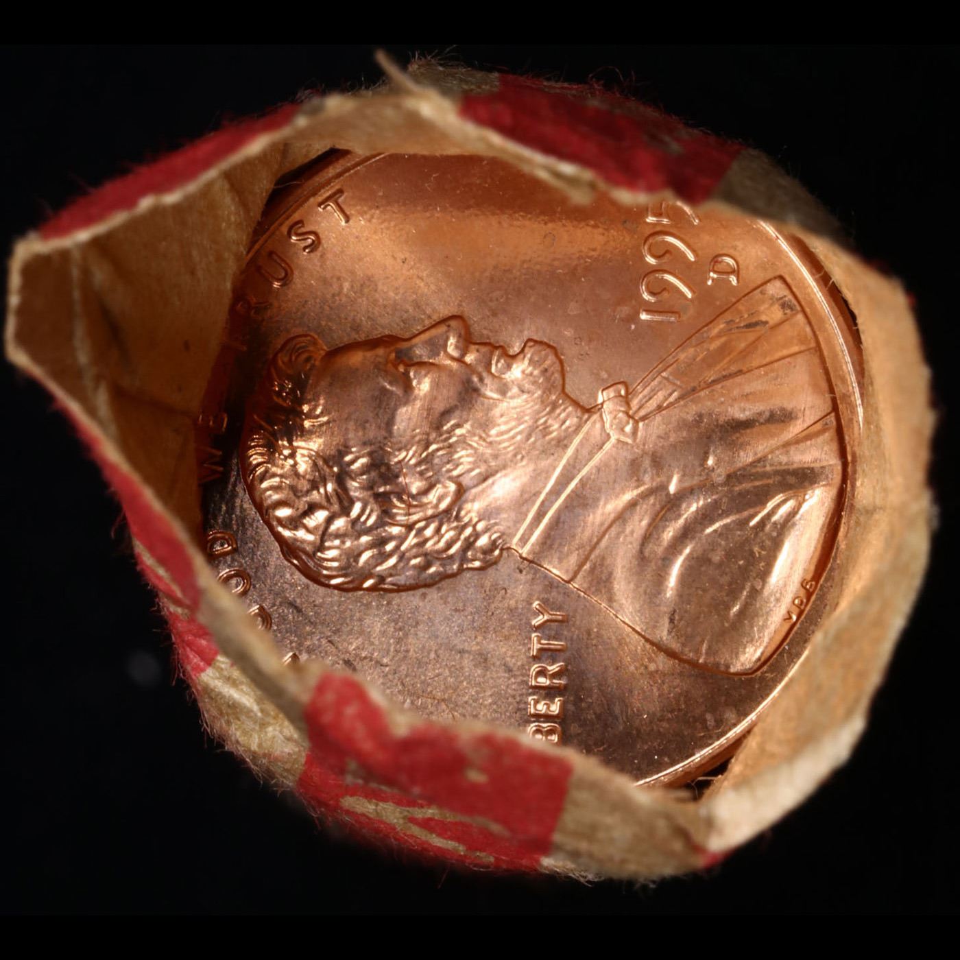 Shotgun Lincoln 1c roll, 1995-d 50 pcs Wrapper . A terrific Shotgun roll of Lincoln cents. All coins cherry red. Trends ms65 rd $10