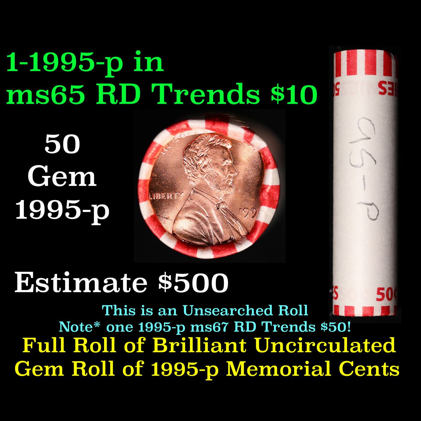 Shotgun Lincoln 1c roll, 1995-p 50 pcs Bank Wrapper.. A terrific Shotgun roll of Lincoln cents. Most if not all coin should be cherry red.
